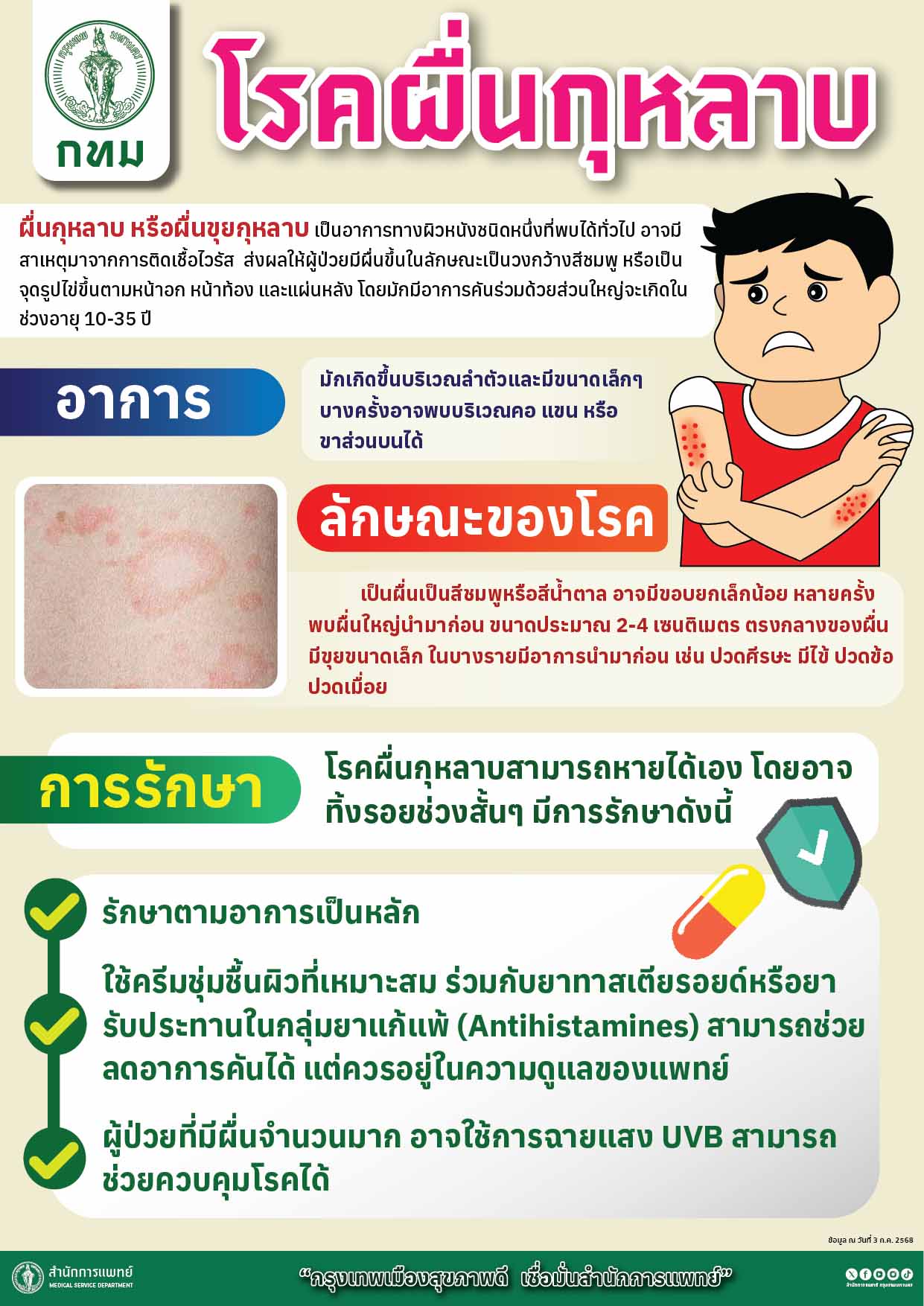 กทม.ชี้โรคผื่นกุหลาบไม่ใช่โรคติดต่อเร่ง ส่งเสริมความรู้ป้องกัน-รักษาที่ถูกต้อง