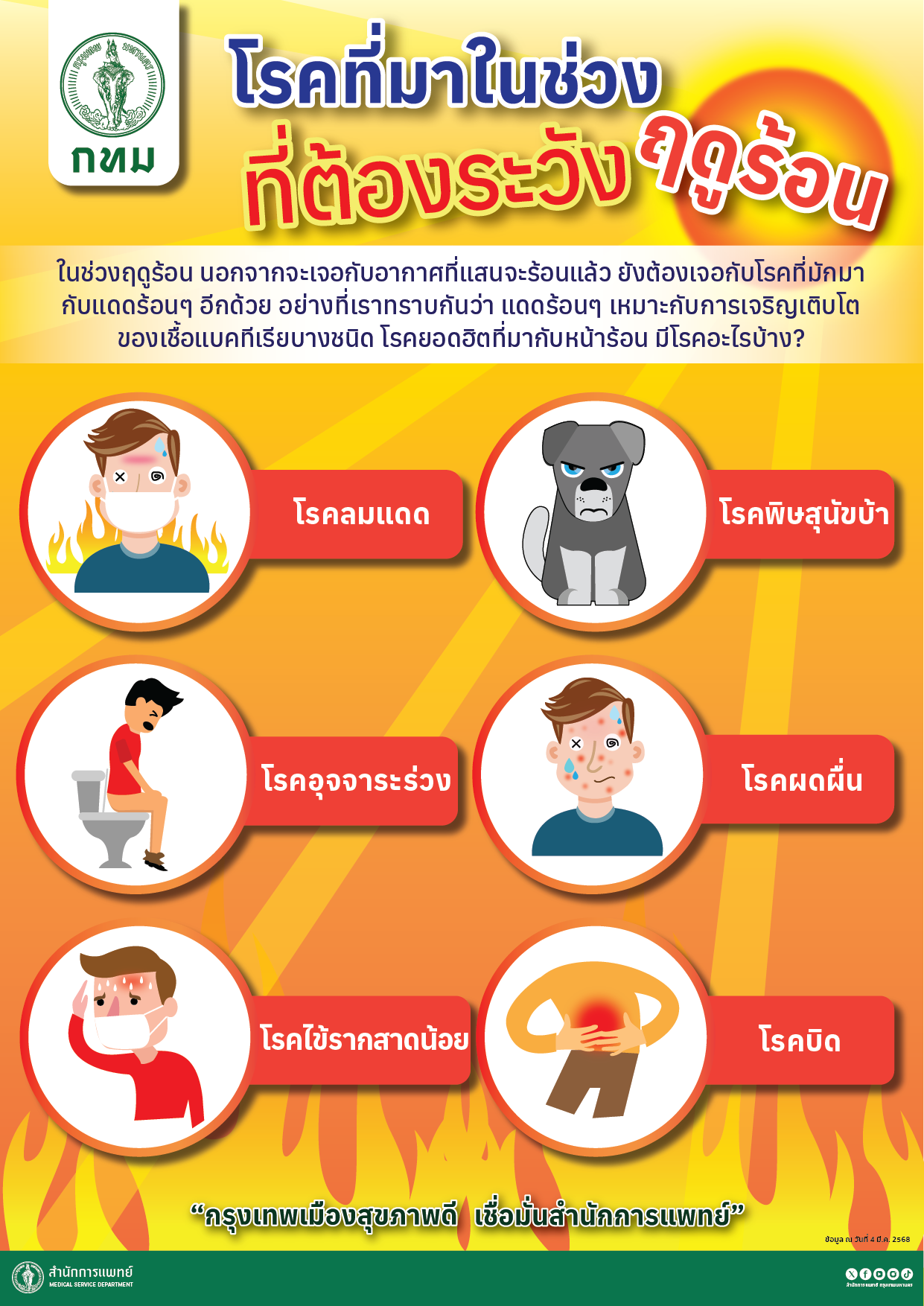 กทม.รุกเฝ้าระวังโรคติดต่อในช่วงฤดูร้อน เตรียมพร้อมศูนย์ปฏิบัติการแพทย์ฉุกเฉิน
