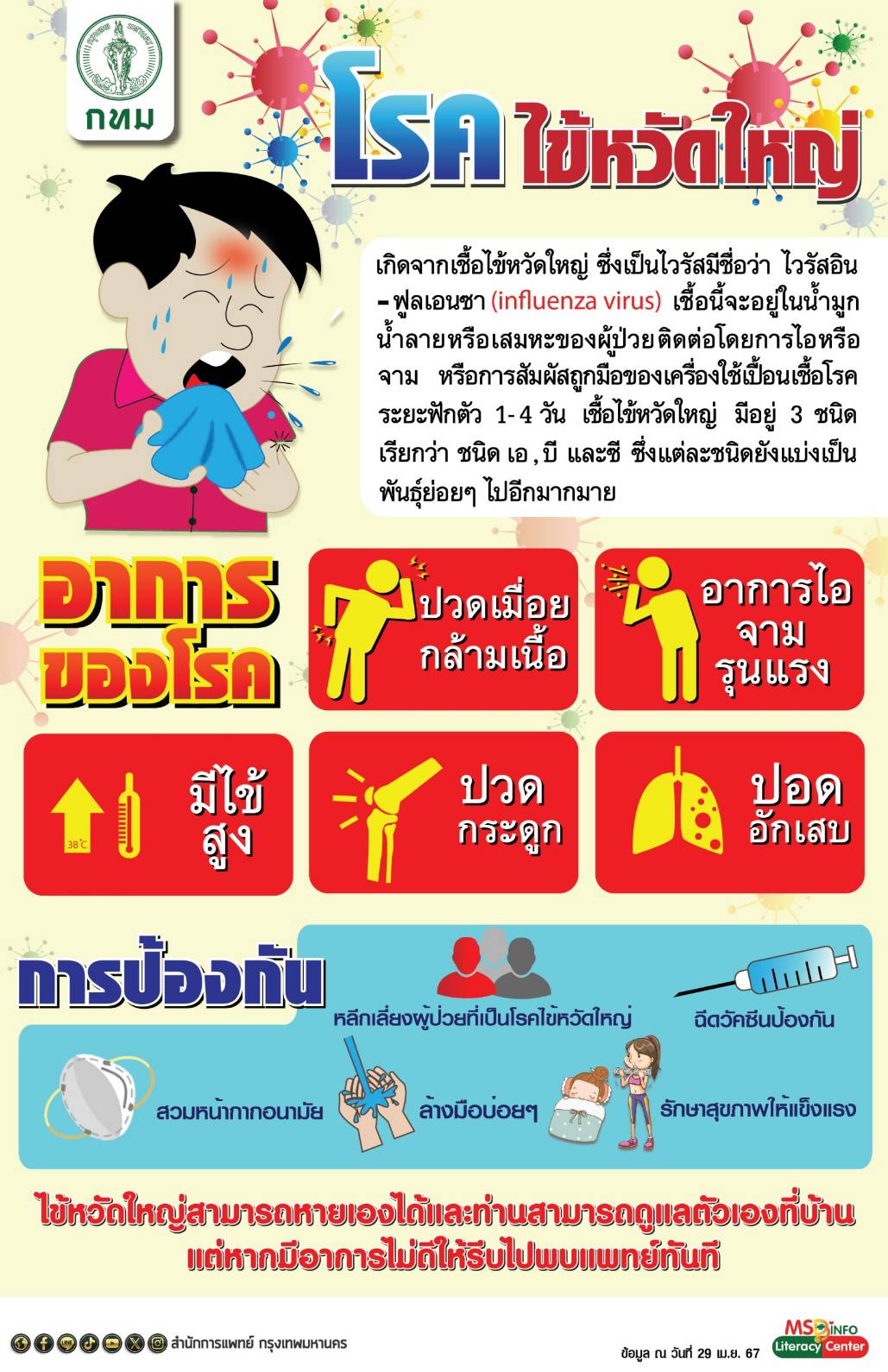 กทม.เข้ม!ป้องกันการระบาดไข้หวัดใหญ่ แนะกลุ่มเสี่ยงฉีดวัคซีน-ดูแลสุขภาพ