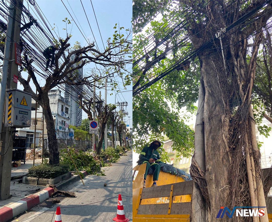 เขตธนบุรีแจงตัดแต่งกิ่งไม้ถนนกรุงธนบุรี ตามหลักรุกขกรรมป้องกันไฟลัดวงจร