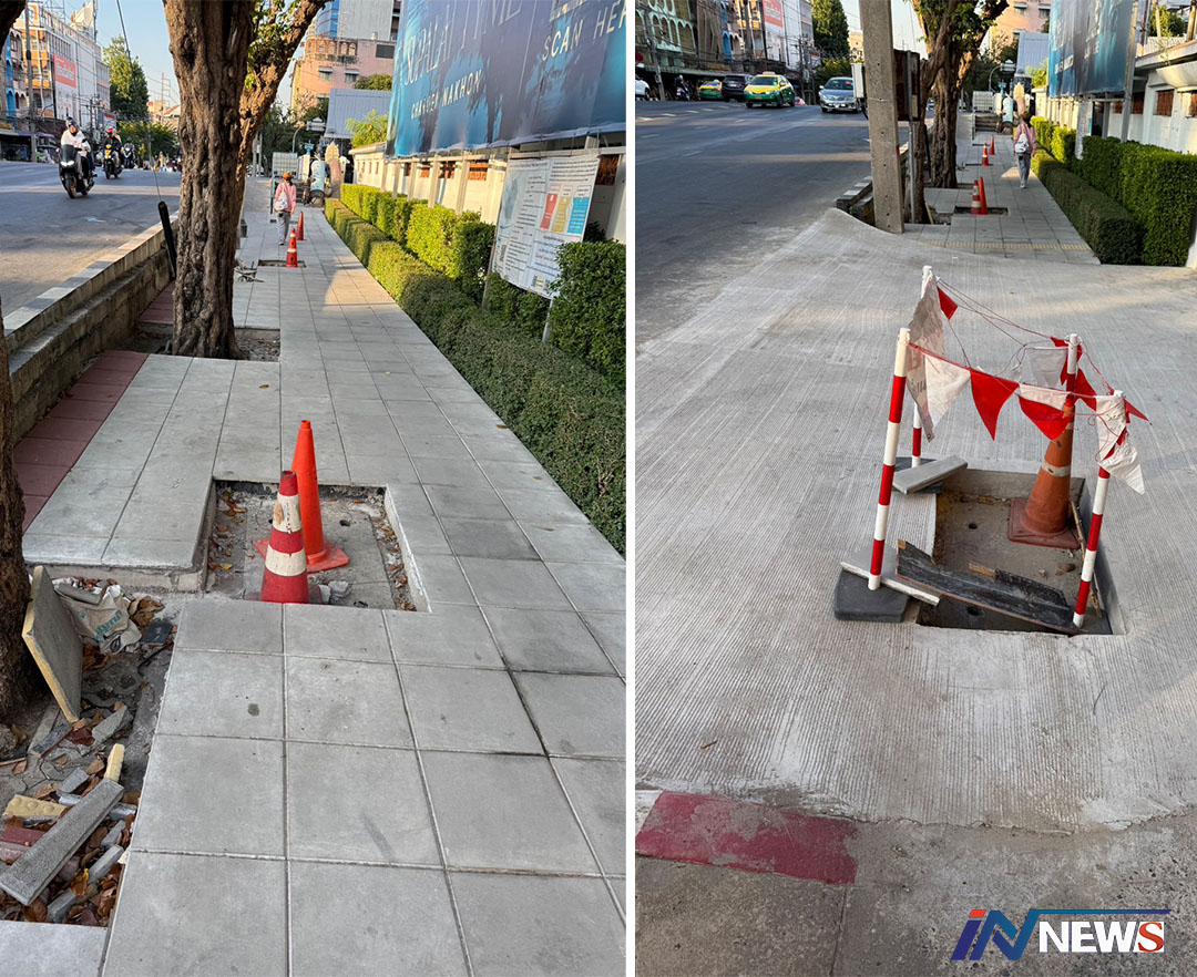 กทม.ปรับระดับฝาท่อถนนเจริญนคร46-48 ให้เสมอทางเท้า