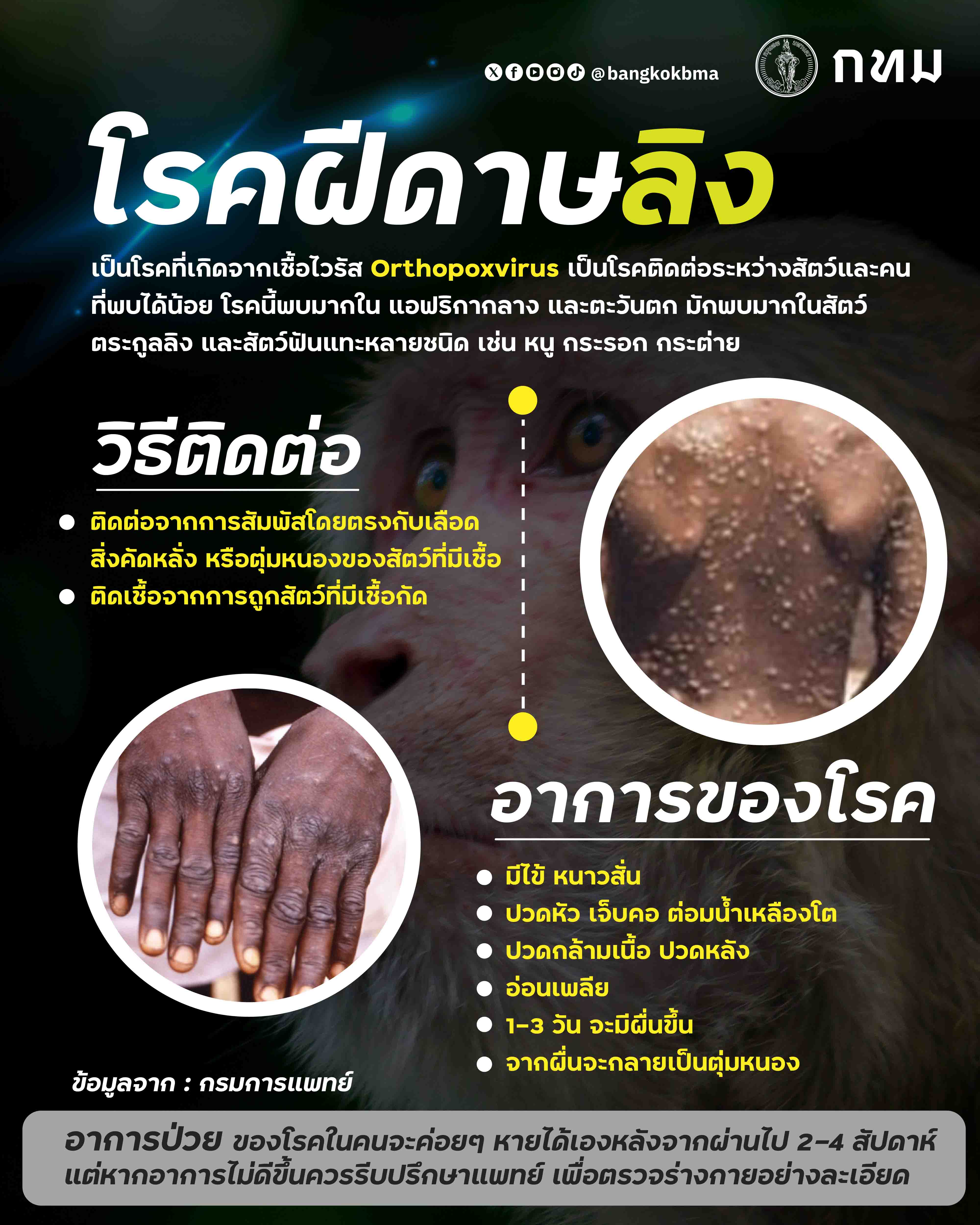 กทม.เน้นย้ำมาตรการเฝ้าระวังป้องกันการ แพร่ระบาดโรคฝีดาษลิงในกรุงเทพฯ