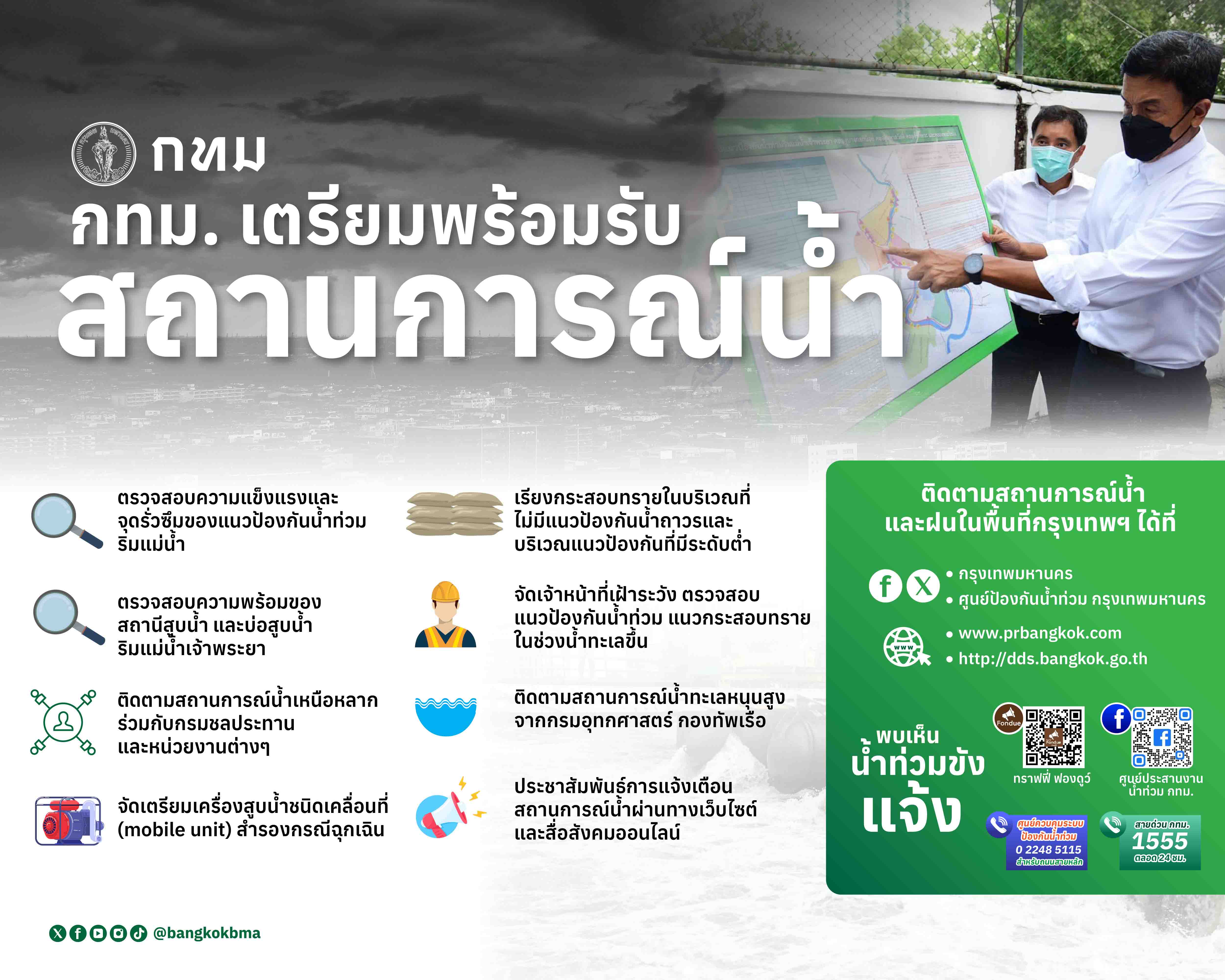 กทม.เตรียมเฝ้าระวัง 'น้ำเหนือ-น้ำหนุน' ตรวจแผงคันกั้นน้ำริมเจ้าพระยา