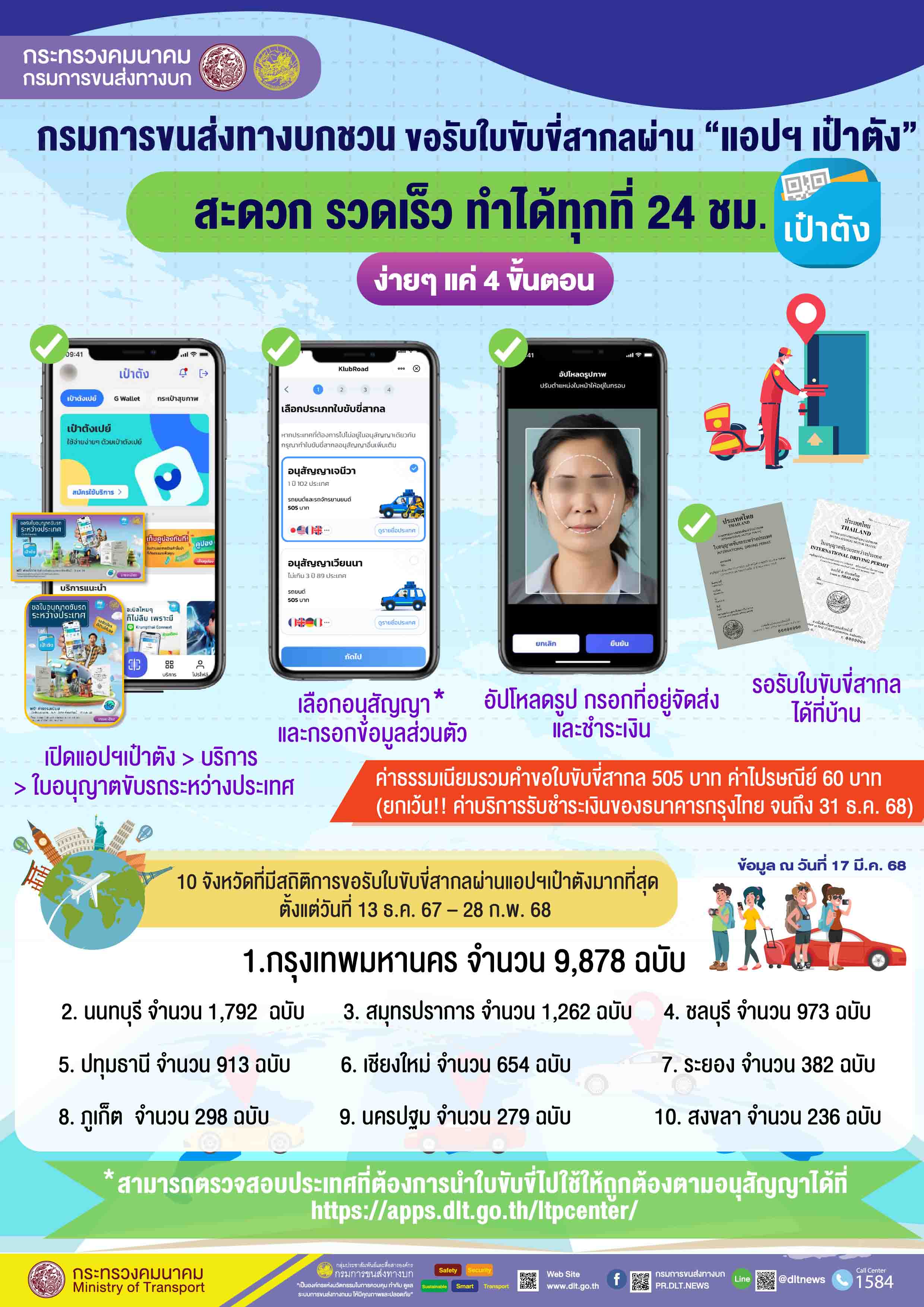 กรุงเทพฯ-กรมการขนส่งทางบก เชิญชวนผู้ต้องการขอรับใบขับขี่สากลดำเนินการผ่านแอปเป๋าตัง สะดวก รวดเร็ว ทำได้ทุกที่ทุกเวลาตลอด...