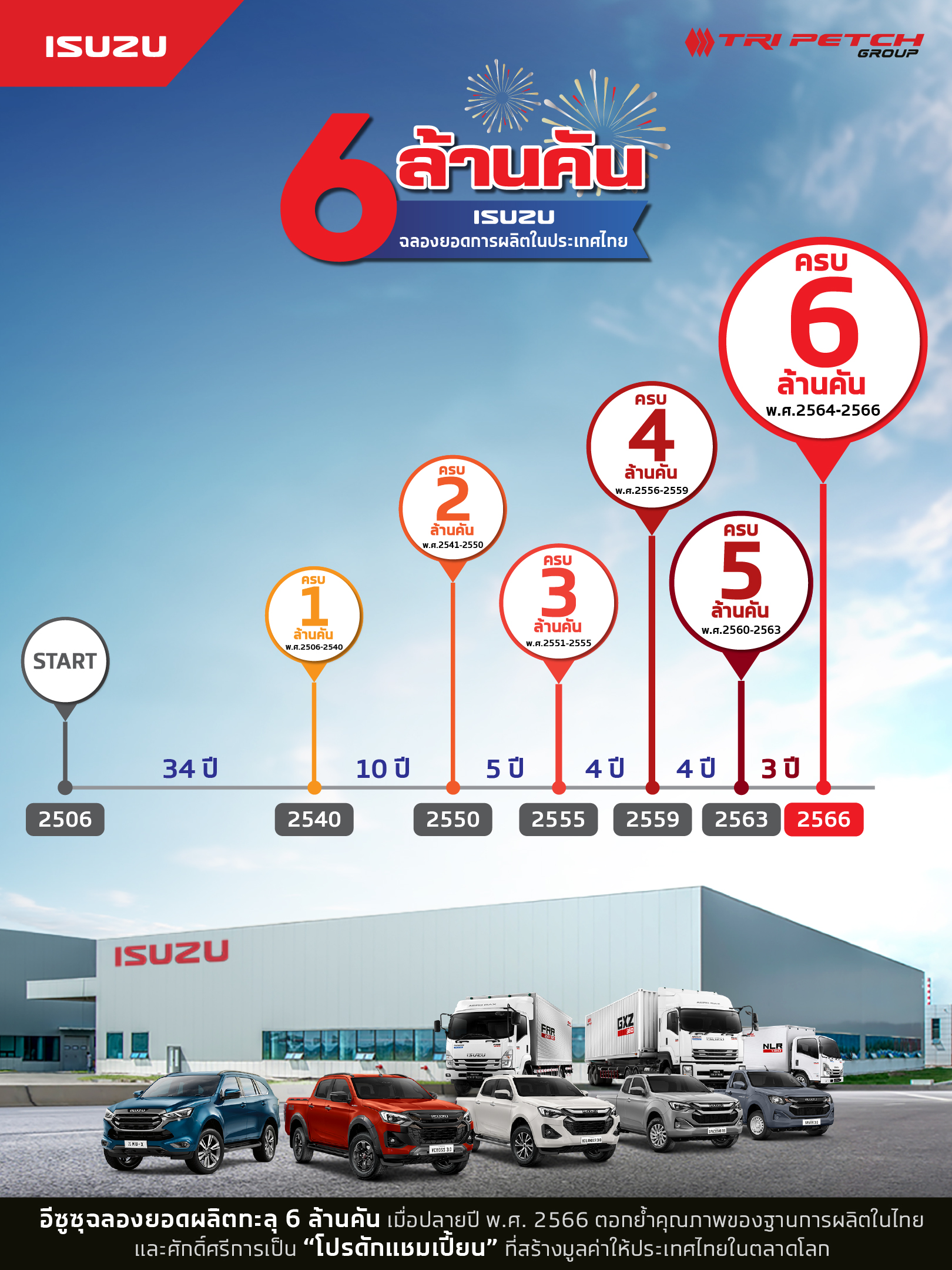 อีซูซุฉลองยอดผลิตทะลุ6ล้านคันตอกย้ำ คุณภาพฐานการผลิตในไทย-แชมเปี้ยน