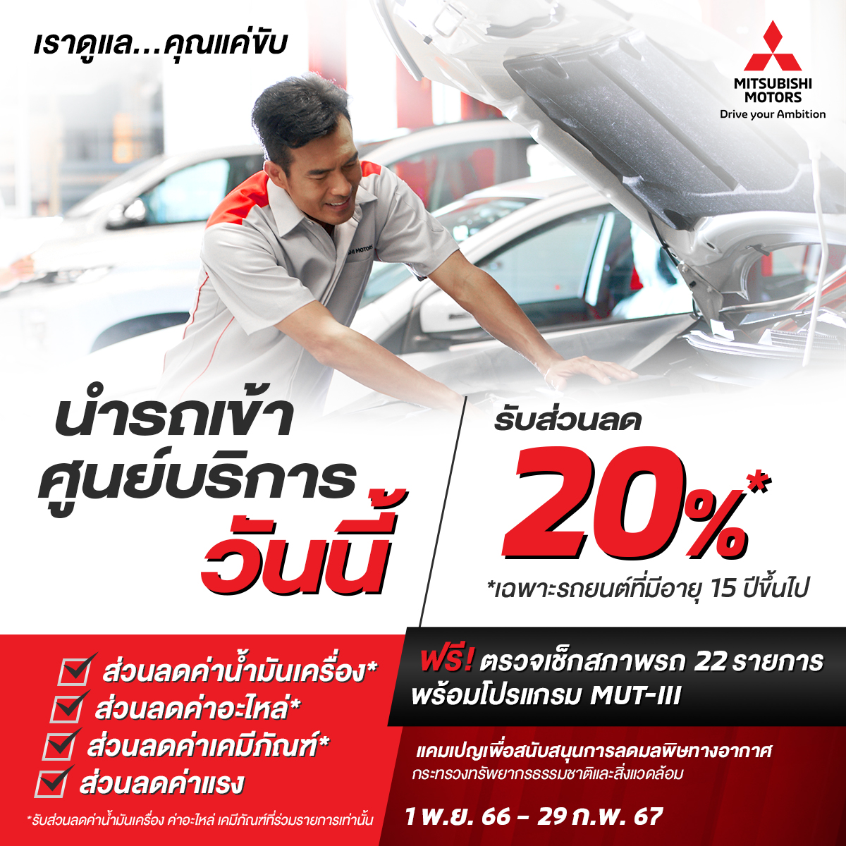 'มิตซูบิชิ มอเตอร์ส'ชวนนำรถ15ปีขึ้นไป ตรวจเช็กสภาพรถฟรี!/ส่วนลดพิเศษ