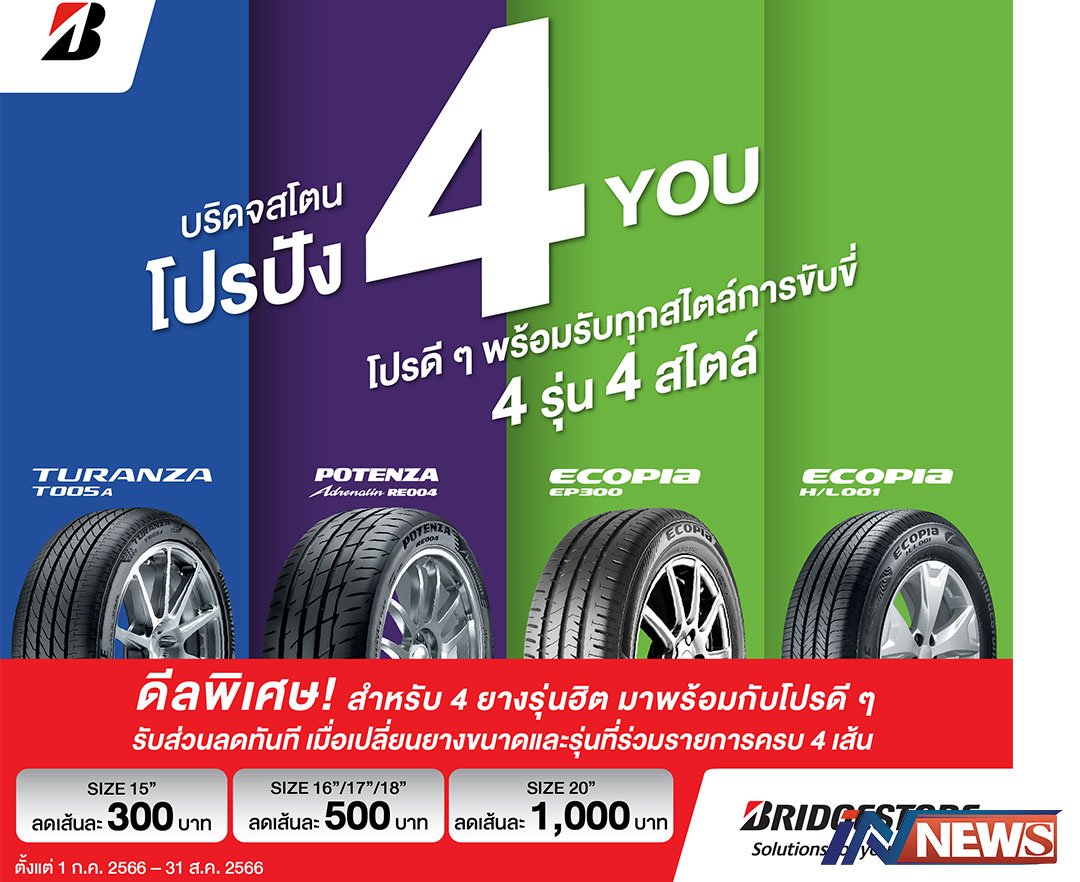 บริดจสโตนจัดโปรปัง 4You มอบโปรดีๆ ตอบทุกไลฟ์สไตล์การขับขี่ยาง4รุ่น