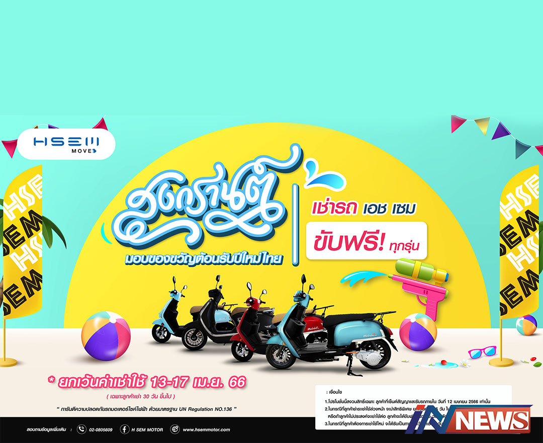กรุงเทพฯ-เอช เซม มอบความสุขในเทศกาลมหาสงกรานต์ หรือวันขึ้นปีใหม่ไทย โดยบริษัทฯ ยกเว้นค่าเช่ารถมอเตอร์ไซด์ไฟฟ้าทุกรุ่นให้...