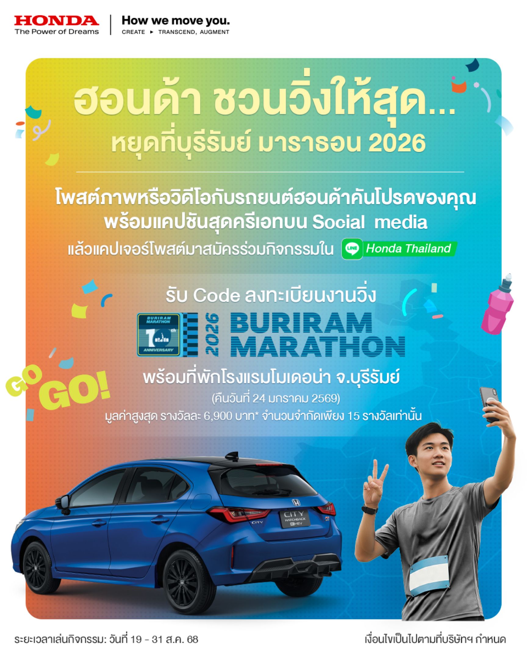 กรุงเทพฯ-20 สิงหาคม 2568 ปลุกพลังนักวิ่งในตัวคุณให้พร้อม! บริษัท ฮอนด้า ออโตโมบิล (ประเทศไทย) จำกัด&...