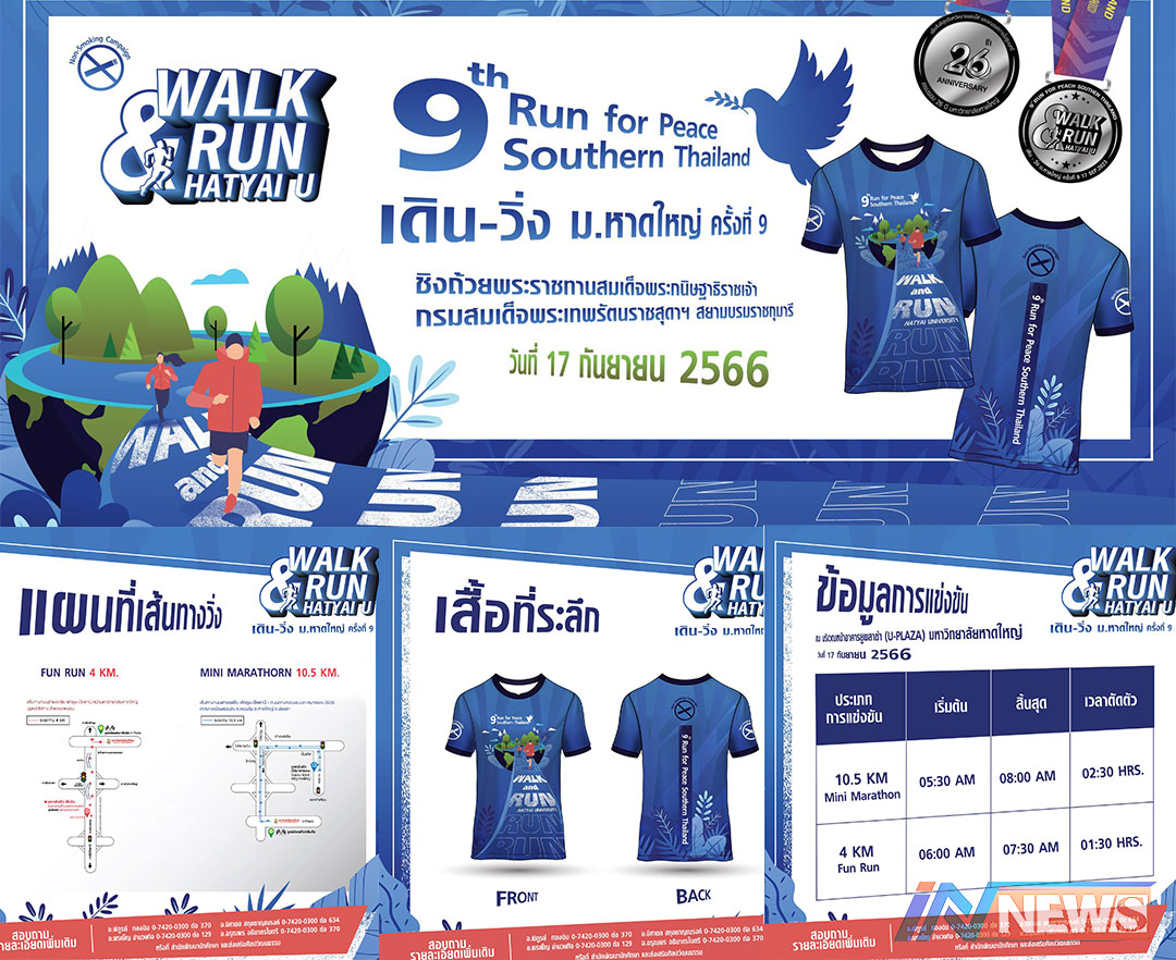 ม.หาดใหญ่ชวนร่วม'เดิน-วิ่งเพื่อสันติสุข' ชิงถ้วยกรมสมเด็จพระเทพฯ17ก.ย.นี้
