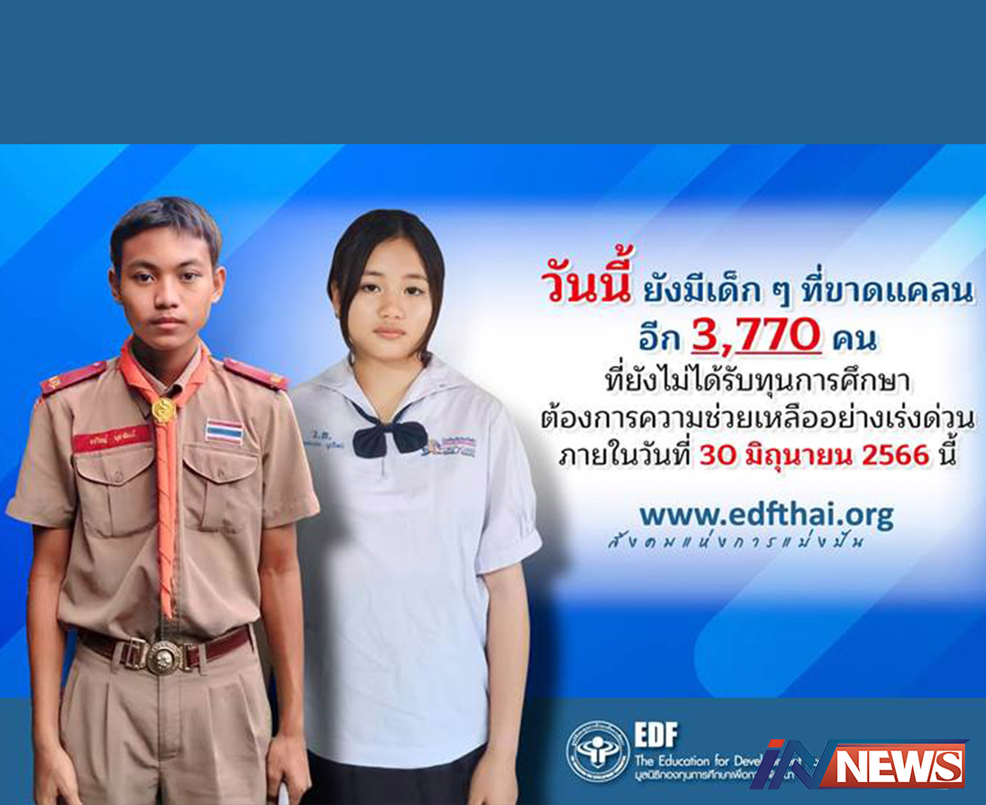 มูลนิธิEDFชวนมอบอนาคตทุนการศึกษา ให้นักเรียนที่ยากไร้3,770คน30มิ.ย.นี้
