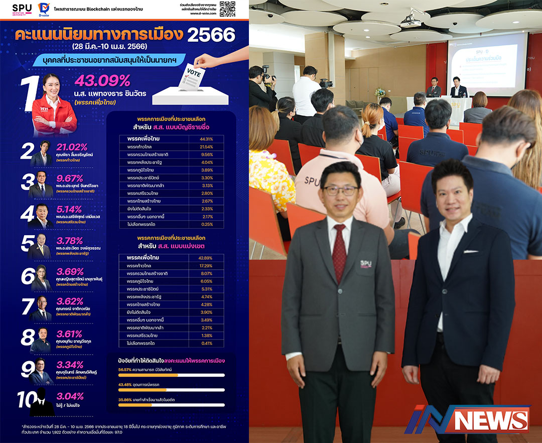 'ม.ศรีปทุม-ดีโหวต'เปิดบน Blockchain 'เพื่อไทย-ก้าวไกล'นำขาด/แก้ค่าครองชีพ