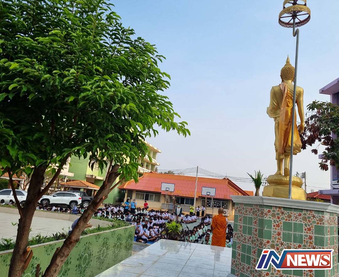ปราจีนบุรี-พระมหาสุเทพ อหึสโก วัดหลวงปรีชากูล รองเจ้าอาวาสวัดหลวงปรีชากูล พบนักเรียนหน้าเสาธงโรงเรียนเทศบาล 2 (วัดหลวงปร...