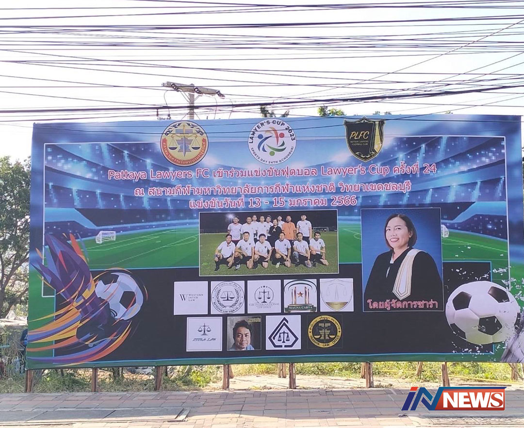 ขึ้นป้ายพรึบแข่งฟุตบอลทนายทั่วประเทศ Lawyer's Cup 2023ที่พลฯชลบุรี