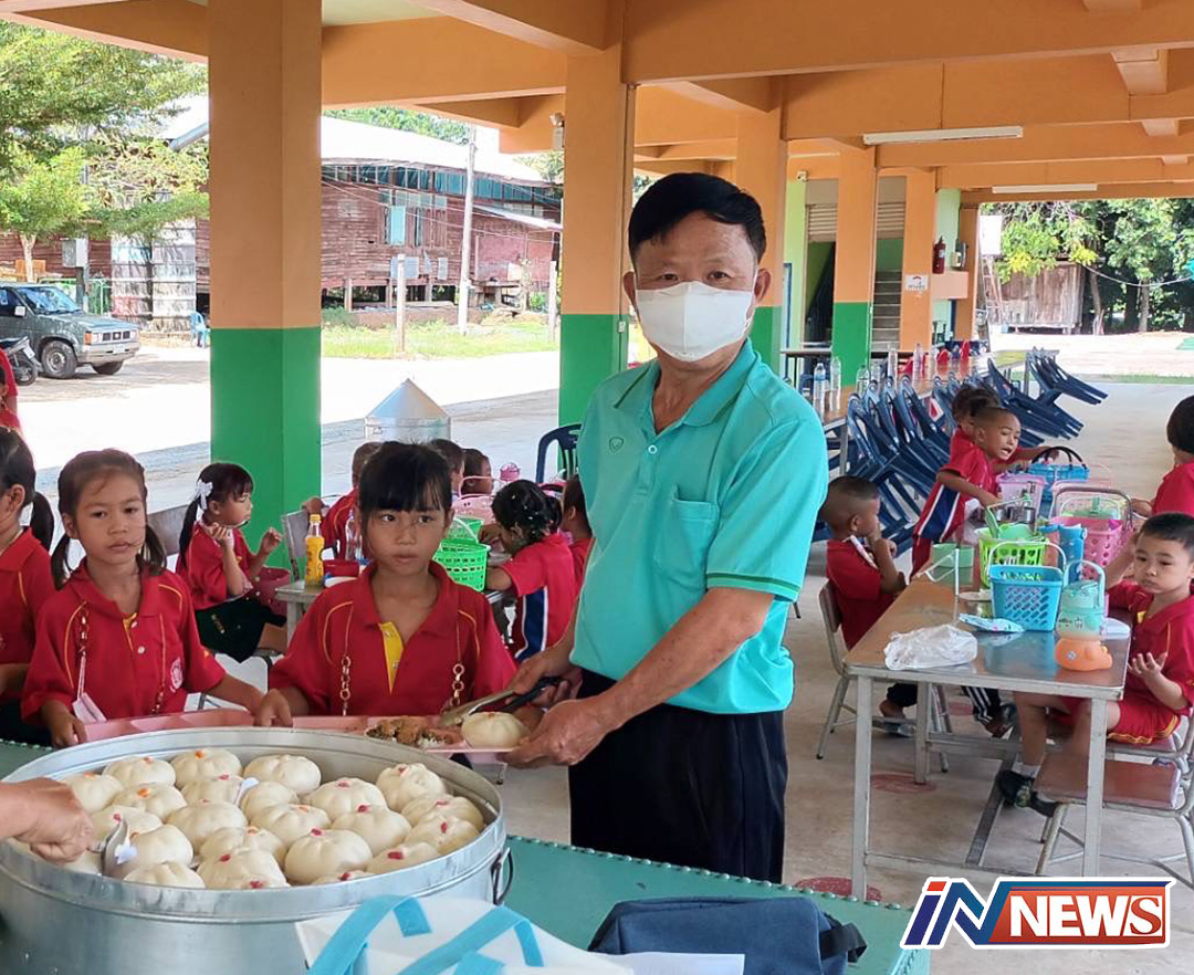 อดีต ผอ.รร.นำคณะเพื่อนพิบูล20 มอบอาหารว่าง‘ซาลาเปา’ให้น.ร