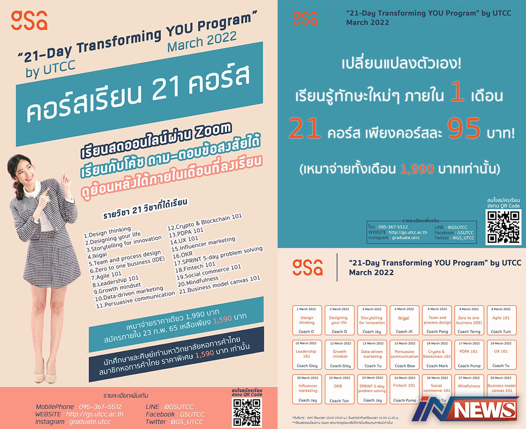 กรุงเทพฯ-กลับมาอีกครั้งมาตามคำเรียกร้อง สำหรับคอร์ส "21-Day Transforming YOU Program by UTCC" March 2022  ...