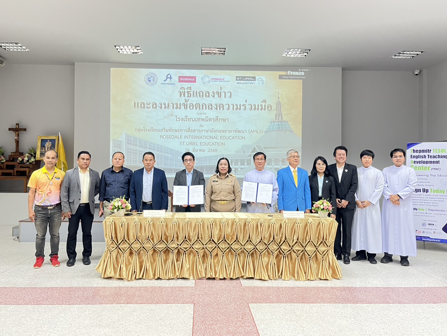 รร.เทพมิตรศึกษาจังหวัดสุราษฎร์ฯจัดพิธี ลงนามเอ็มโอยูทางวิชาการกับ2ชาติ