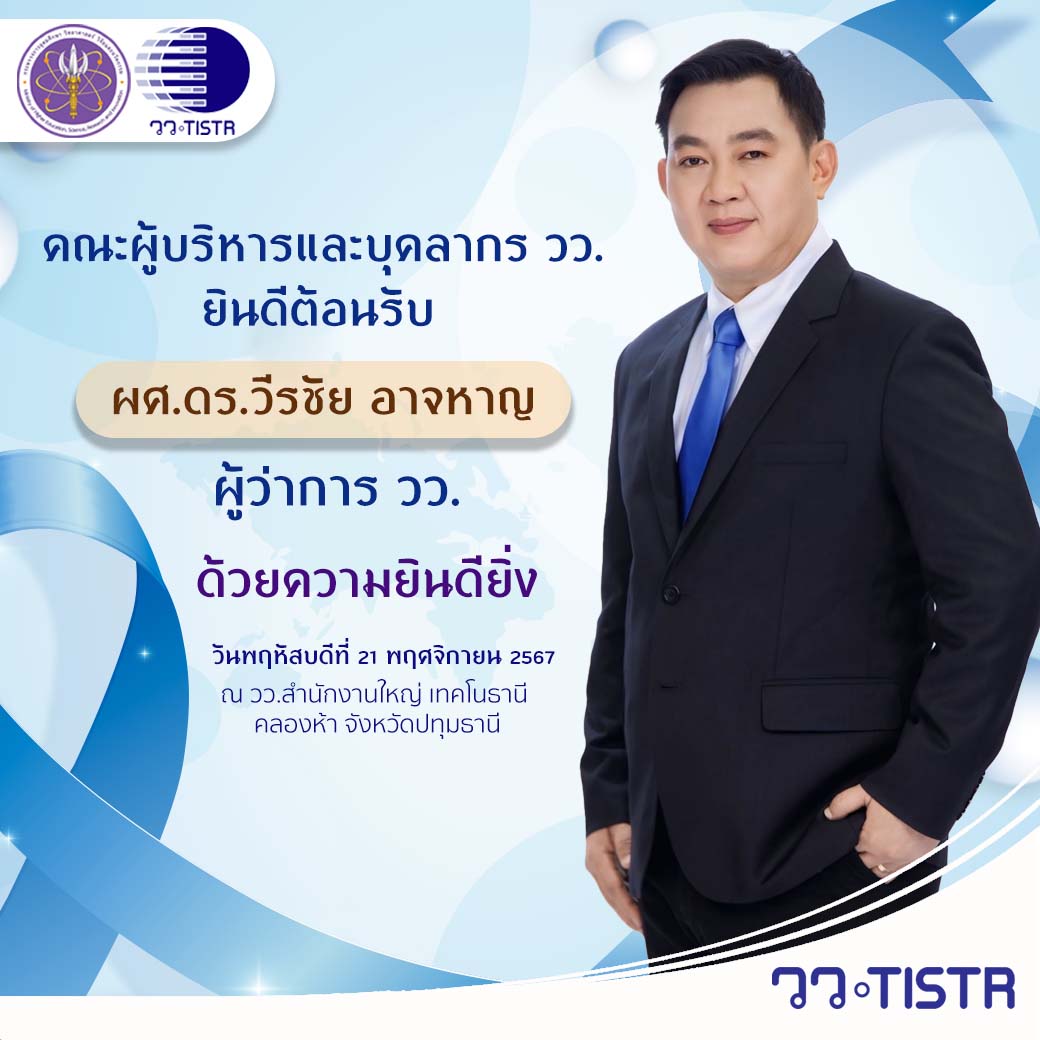 สถาบันวิจัยวิทยาศาสตร์และเทคโนโลยีแห่งประเทศไทย ยินดีต้อนรับ “ผศ.ดร.วีรชัย อาจหาญ” ผู้ว่าการ วว.