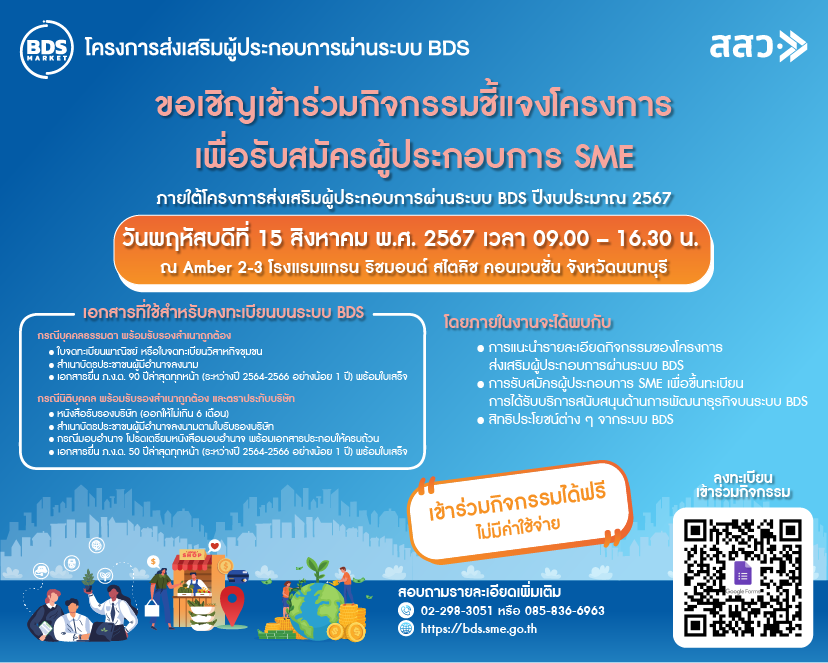 สสว.เดินหน้าพัฒนาSMEผ่านระบบBDS เปิดสมัครที่รร.แกรนด์ริชมอนด์สไตลิชฯ