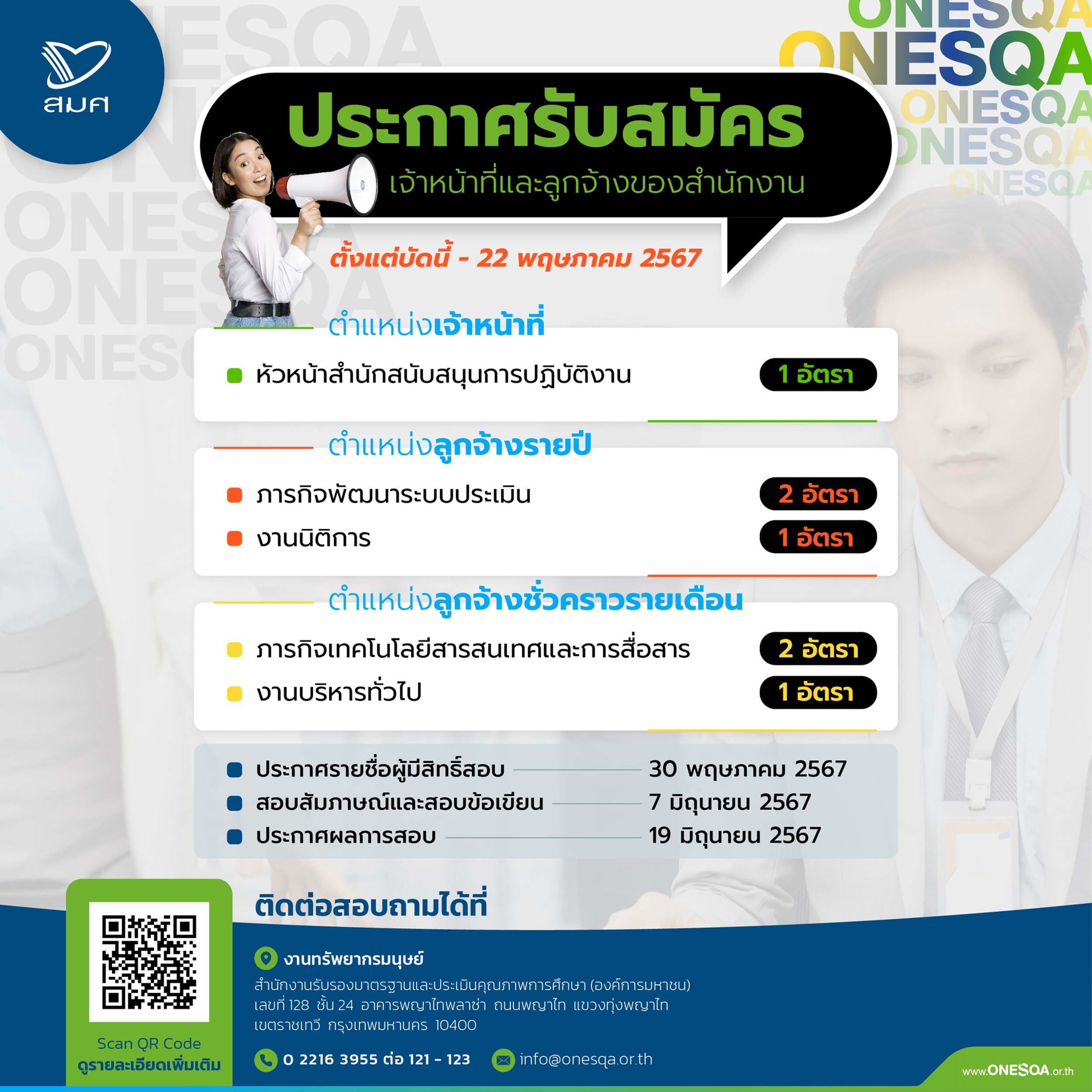 สมศ.เปิดรับสมัครเจ้าหน้าที่และลูกจ้าง ประจำสำนักงาน7อัตรา