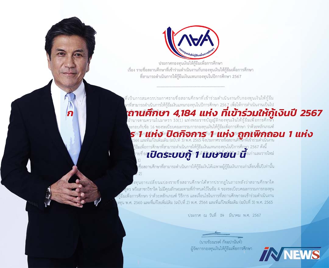 กยศ.เปิดรายชื่อสถานศึกษาเข้าร่วมปี67 ทุกระดับ4,184แห่ง/ยื่นกู้ยืมเริ่ม1เม.ย.นี้
