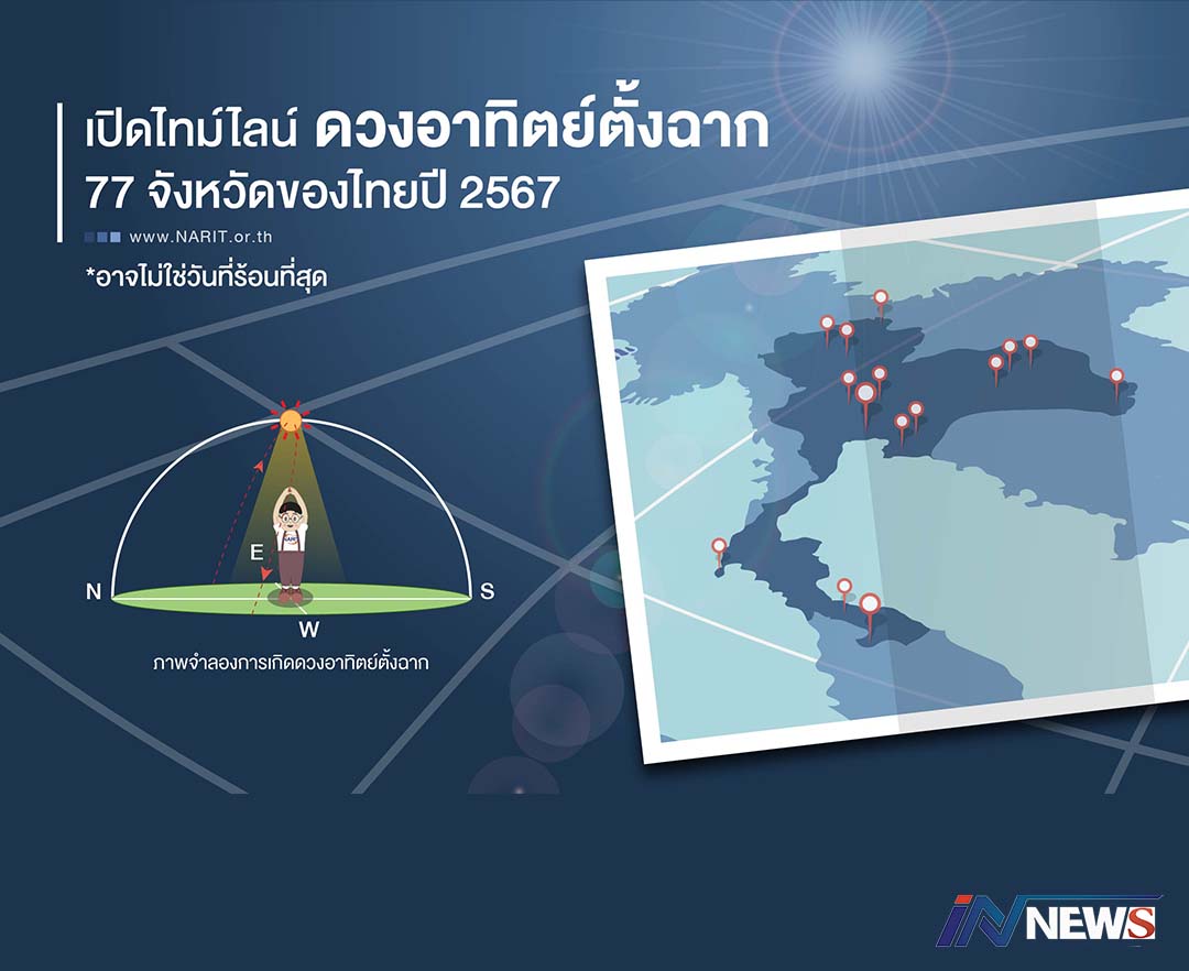 ปราจีนบุรี-เปิดไทม์ไลน์ ดวงอาทิตย์ตั้งฉาก 77 จังหวัดของไทยปี 2567 เริ่มจากทางใต้สุดที่ อ. เบตง จ. ยะลา ในวันที่ 4 ...