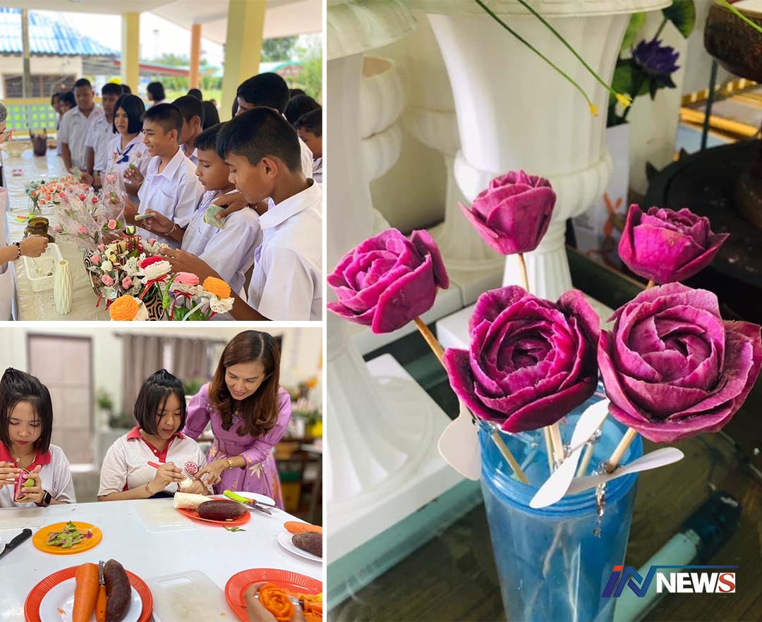 นร.รร.ท่าจีนอุดมวิทยาผลิตดอกกุหลาบ ส่งลูกค้าส่งต่อความรักในวันวาเลนไทม์