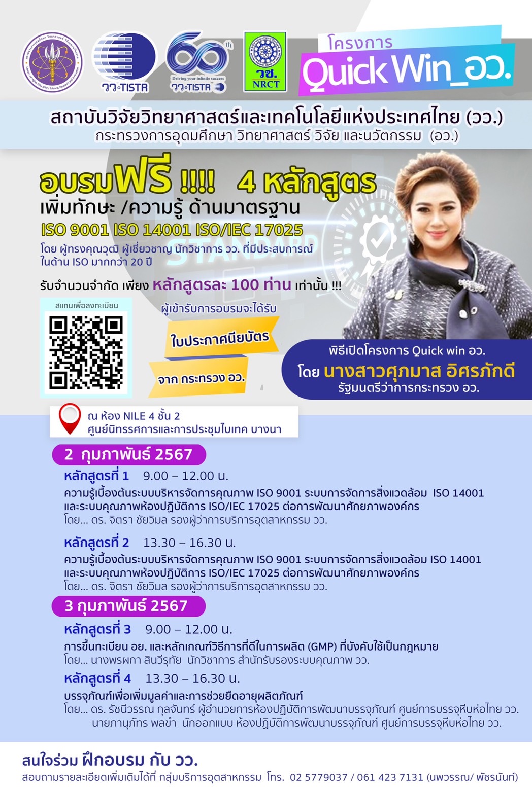 วว./วช.ร่วมเดินหน้าโครงการQuick win อว.จัดอบรมฟรี!เพิ่มทักษะมาตรฐาน