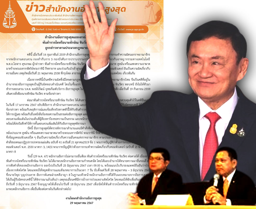 เมื่อวันพุธที่ 29 พฤษภาม 2567 ที่ผ่านมา สํานักงานอัยการสูงสุด แถลง กรณีอัยการสูงสุดสั่งฟ้อง พันตํารวจโทหรือนายทักษิณ ชิน...