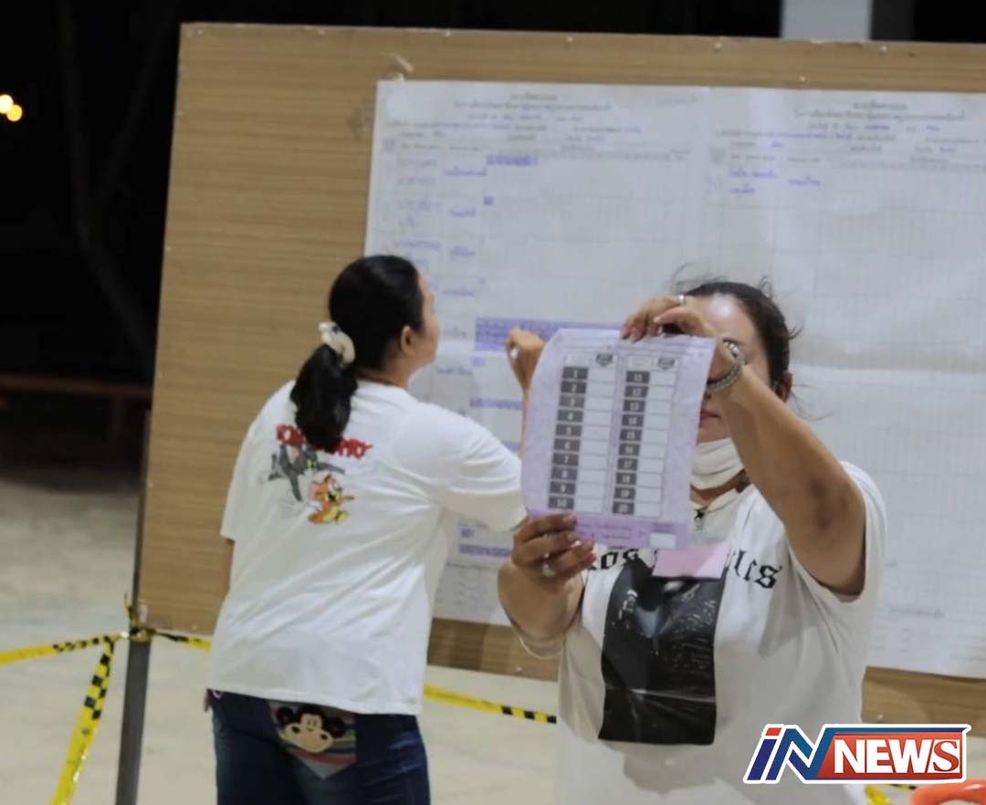ชลบุรี-บางละมุงนับผลคะแนนเลือกตั้งอย่างไม่เป็นทางการ ผู้สมัคร "ก้าวไกล" กอดคออันดับ 1 ทั้งเขต 8-เขต 9