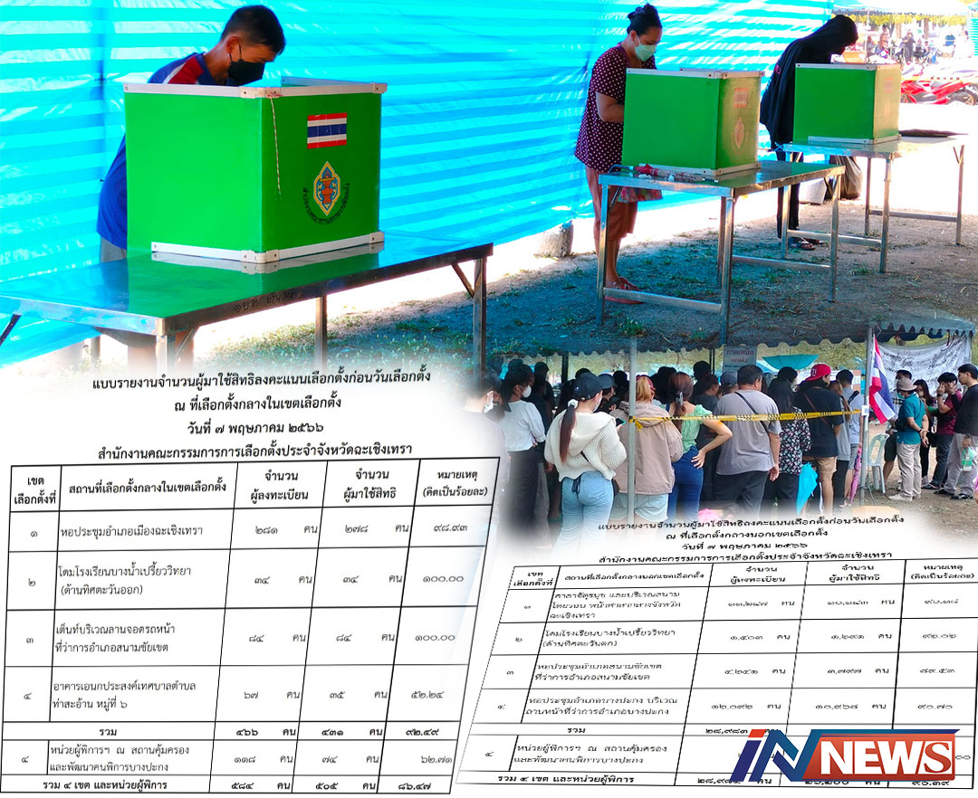 ฉะเชิงเทรา-คนใช้สิทธิ์เลือกตั้งล่วงหน้าแปดริ้วภาพรวมเกินกว่าร้อยละ 90 โดยมี 2 หน่วยออกมาใช้สิทธิ์มากจนครบตามที่ลงทะเบียน...