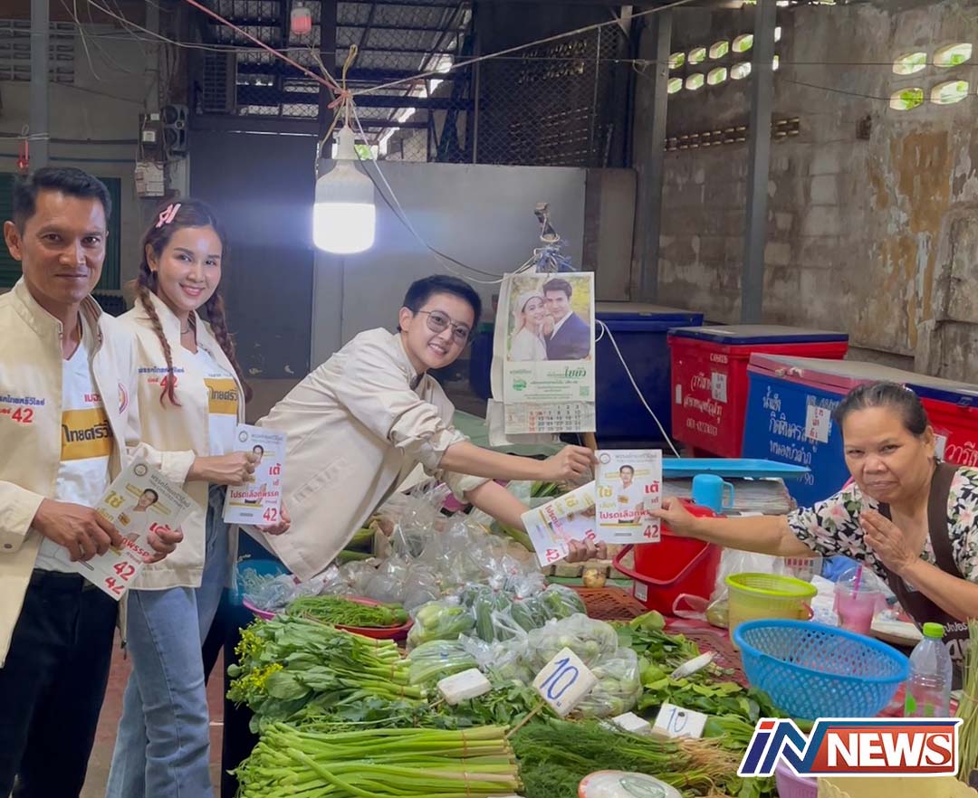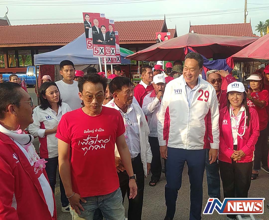 ‘เศรษฐา’ควงโอ๊ค‘พานทองแท้’ลงพื้นที่หาเสียงช่วยลูกพรรคเขต1นครปฐม
