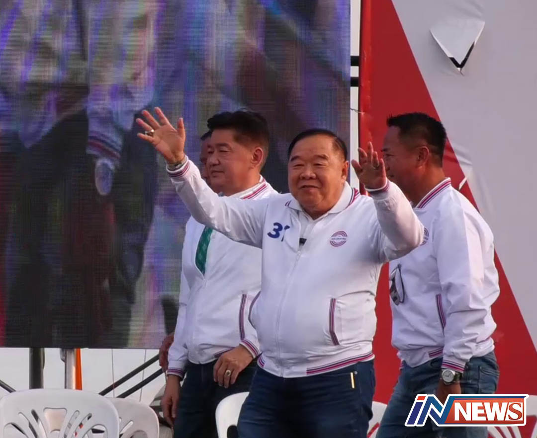 ฝนกระหน่ำเวทีปราศรัยใหญ่พรรคพลังประชารัฐชาวบ้านแห่หลบฝนรอลุงป้อม