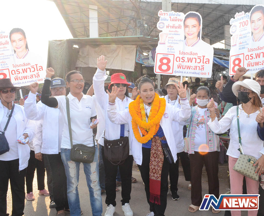 พลากรเพื่อไทยเดินหน้าหาเสียงขออาสารับใช้พี่น้องชาวกาฬสินธุ์เขต2