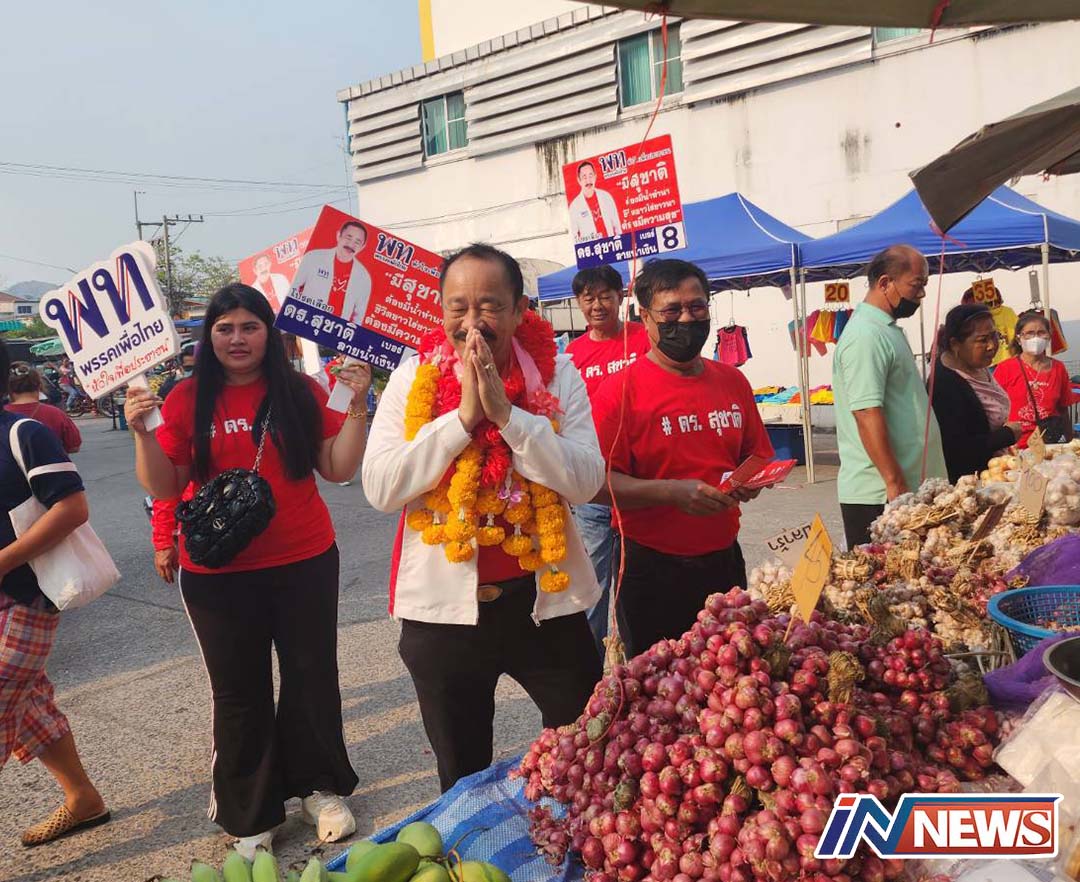 'สุชาติ ลายน้ำเงิน'ลุยตลาดสดขอคะแนน จากแม่ค้าตลาดบ้านหมี่ถิ่นเกิด