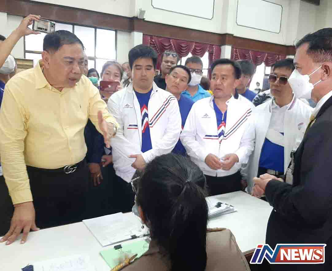 ฉะเชิงเทรา-แปดริ้วที่บริเวณศาลาประชาคมเฉลิมพระเกรียติด้านหน้าศาลากลางจังหวัดฉะเชิงเทรา เปิดรับสมัครสส.วันแรกคึกนายกอบจ.บ...