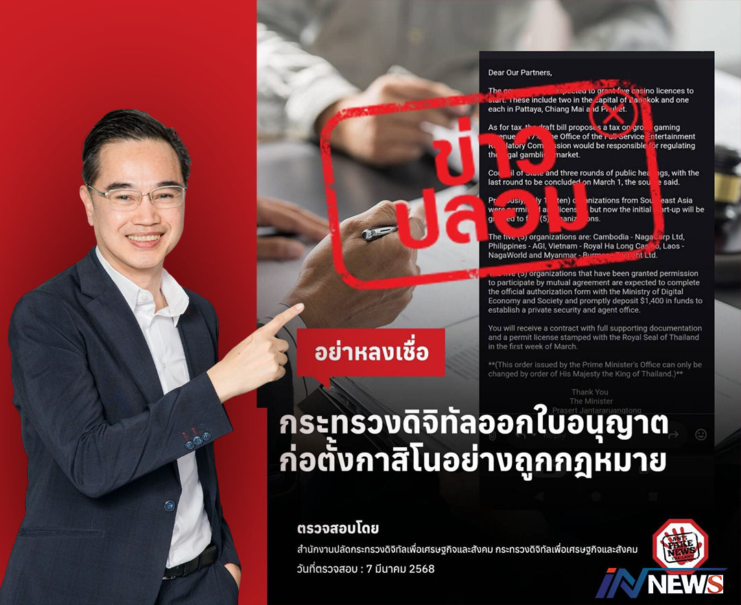 'ดีอีรับบริจาค-แจ้งออกใบอนุญาตกาสิโน ถูกกฎหมาย'เตือนข้อมูลเท็จอย่าหลงเชื่อ