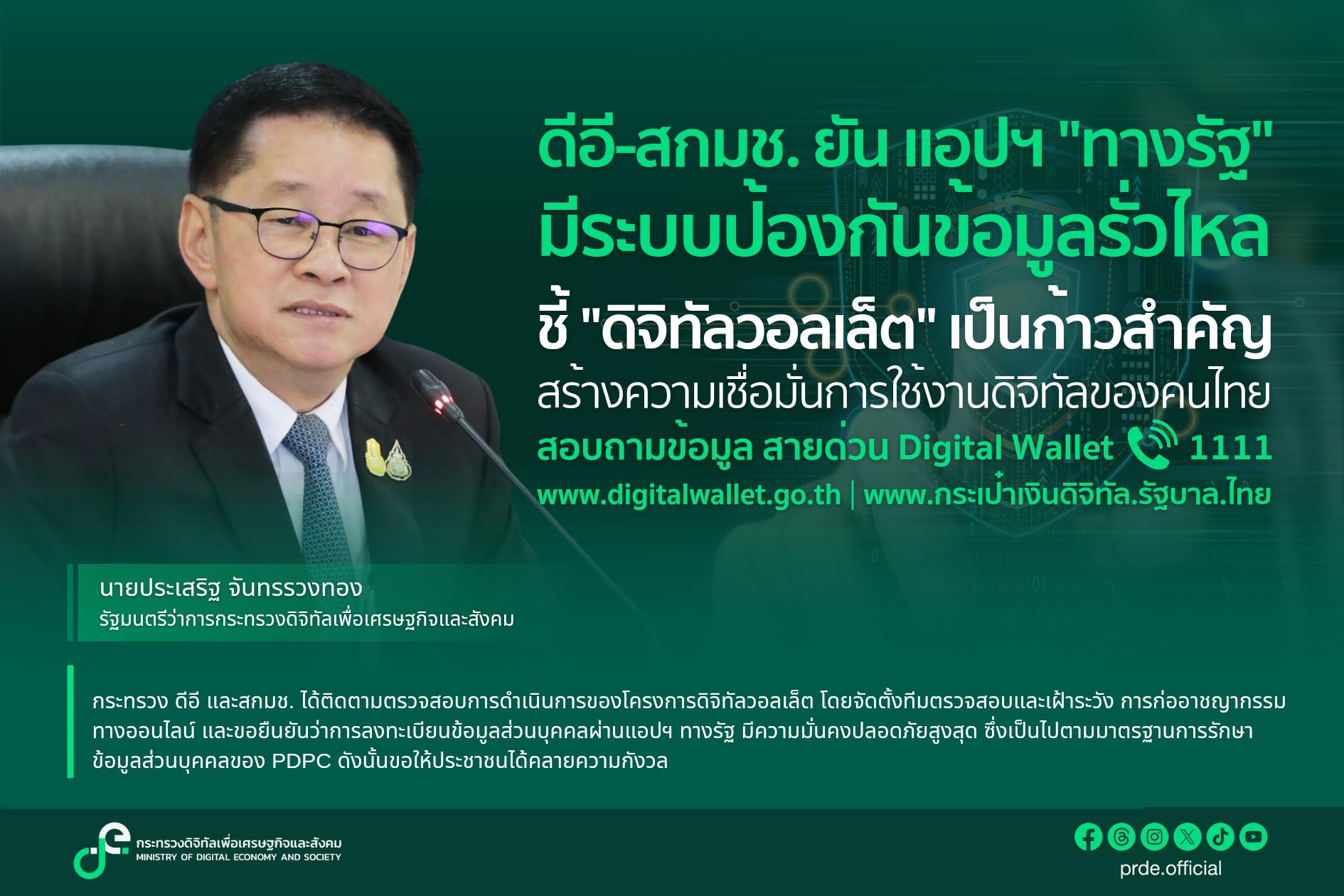ดีอี-สกมช.ยันแอป'ทางรัฐ'มีระบบป้องกัน ข้อมูลรั่วไหลชี้'ดิจิทัลวอลเล็ต'คือก้าวแรก
