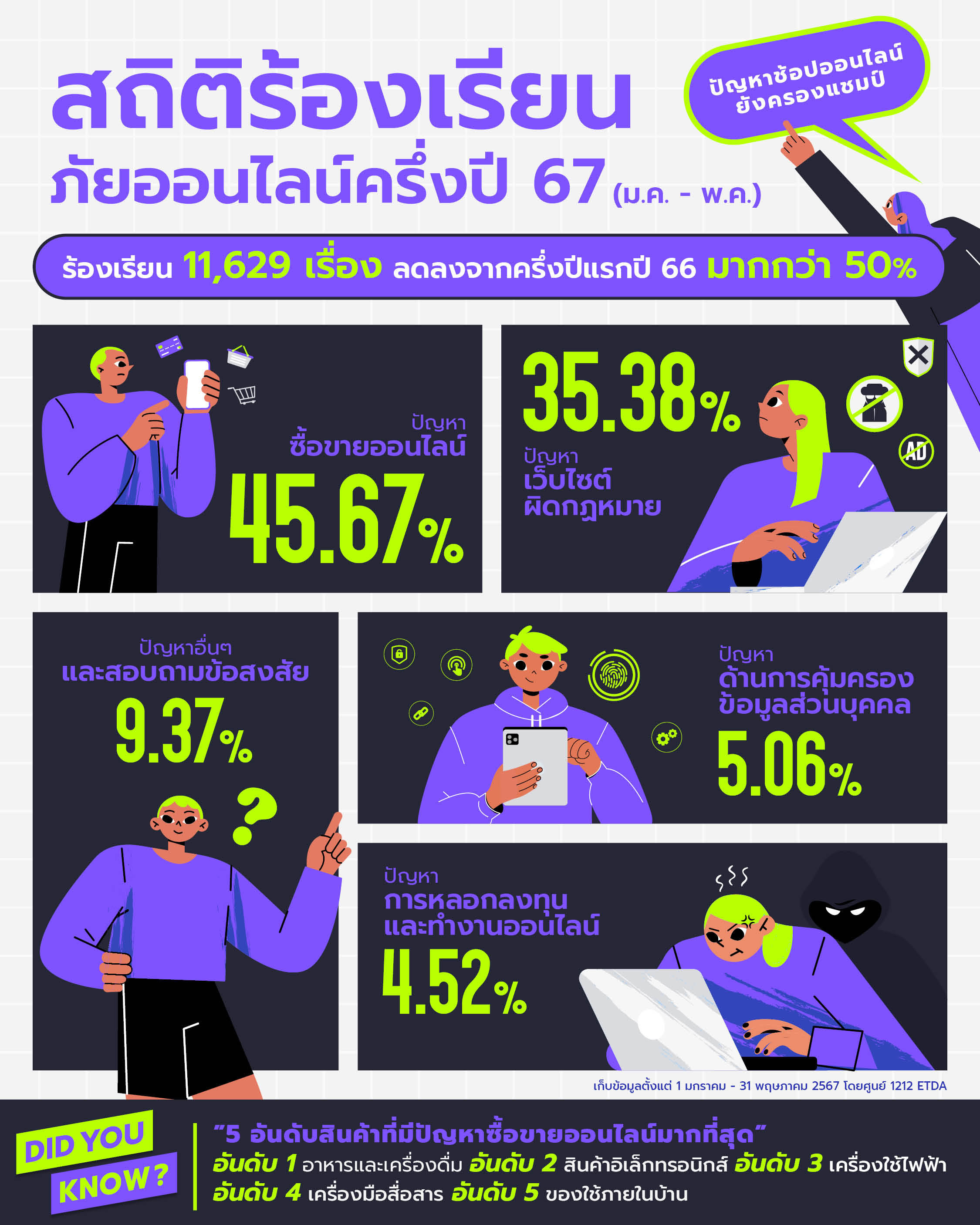 ETDAเผยศูนย์1212พบคนร้องเรียนครึ่งปี กว่าหมื่นเคส/แก็งค์คอลฯครองแชมป์