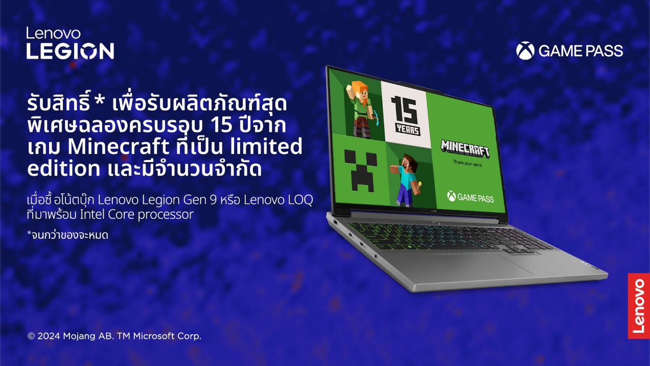 กรุงเทพฯ-เลอโนโว เฉลิมฉลอง Minecraft ครบรอบ 15 ปี ด้วยแล็ปท็อปแอคเซสเซอรี่สุดพรีเมียมรุ่นลิมิเต็ดเอดิชัน ร่วมก...
