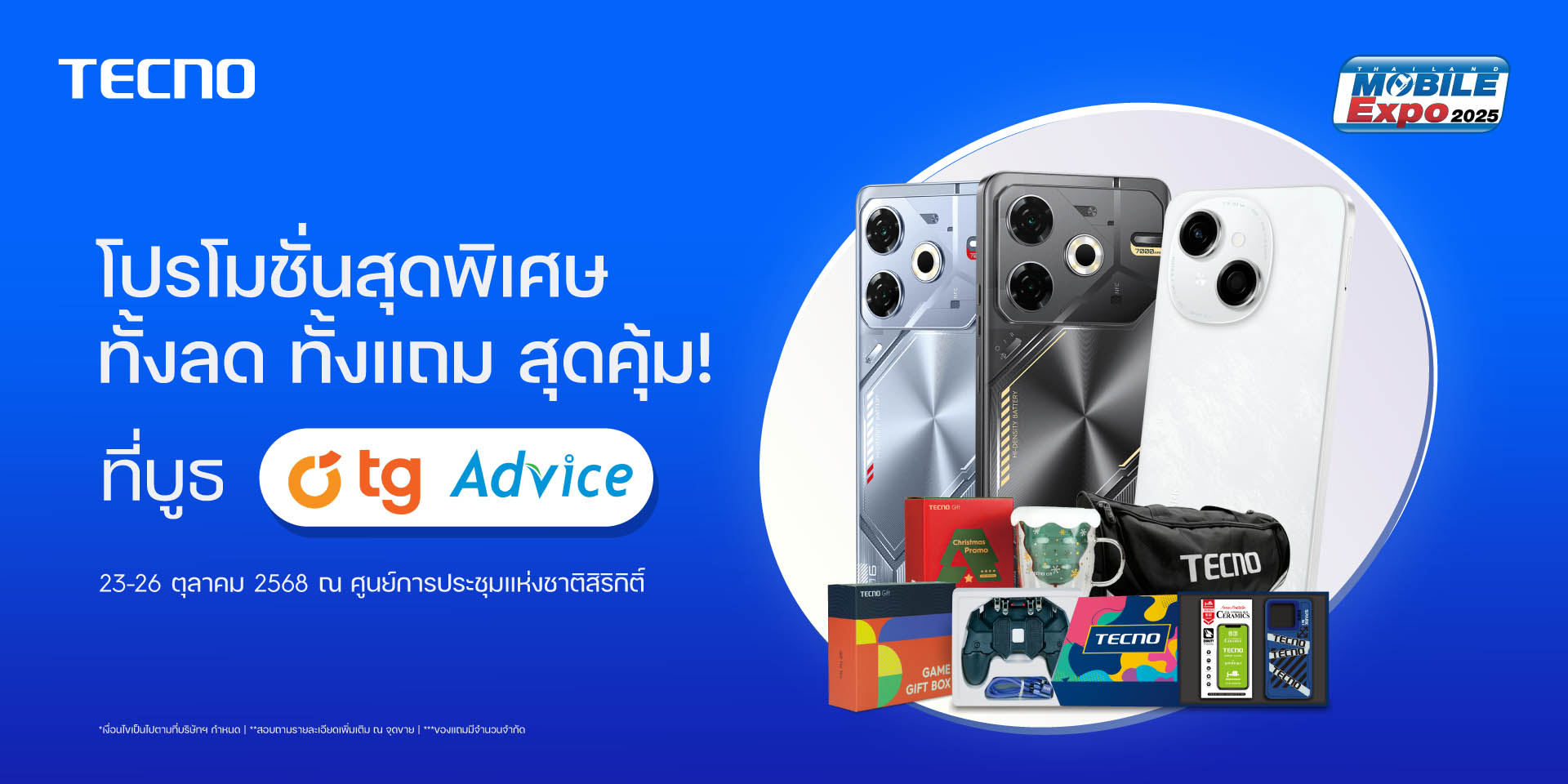 TECNOเล่นใหญ่โชว์นวัตกรรมAIล้ำสมัย โปรเพียบงานThailand Mobile Expo
