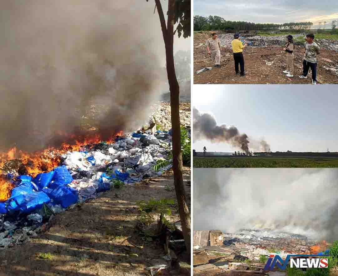 นอภ.ศรีมหาโพธิออกตรวจบ่อขยะเถื่อน ถูกลักลอบนำมาทิ้ง-จุดไฟเผา