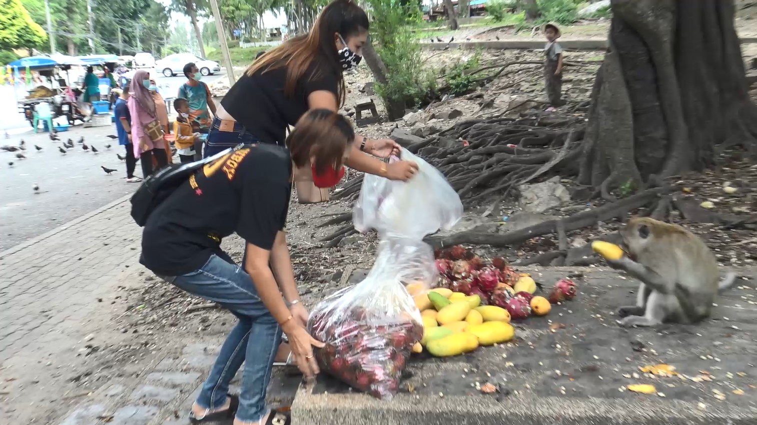 ลิงปาร์ตี้'มะม่วง-เงาะ-แก้วมังกร'พุงกาง! 2สาวผู้ใจบุญให้อาหารลิงแบบจัดเต็ม