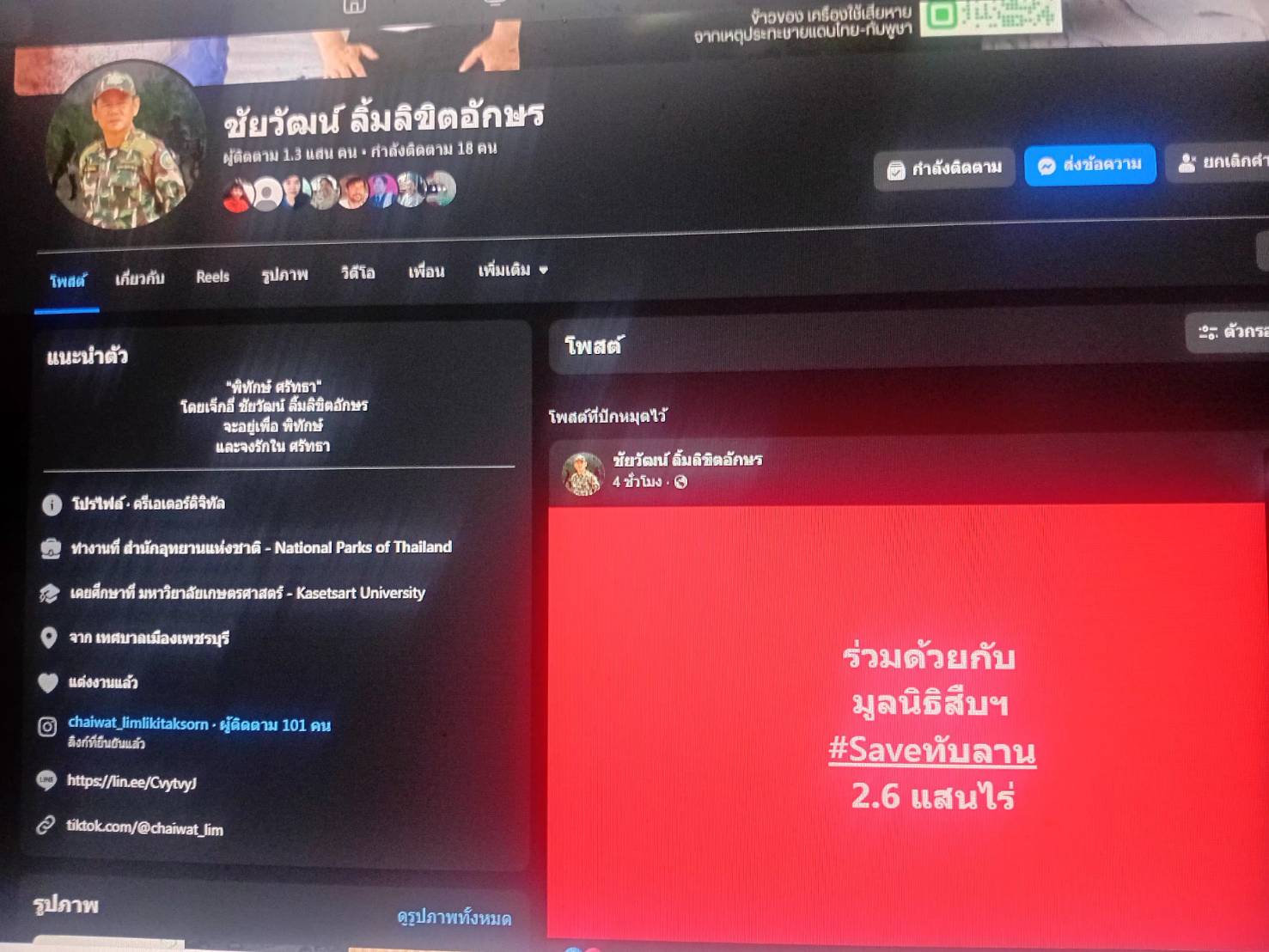 ปราจีนบุรี-โซเชี่ยลระอุอีกรอบหลังชัยวัฒน์ ลิ้มลิขิตอักษรระบุ ... ร่วมด้วยกับมูลนิธิสืบฯ#Saveทับลาน2.6 แสนไร่  ...