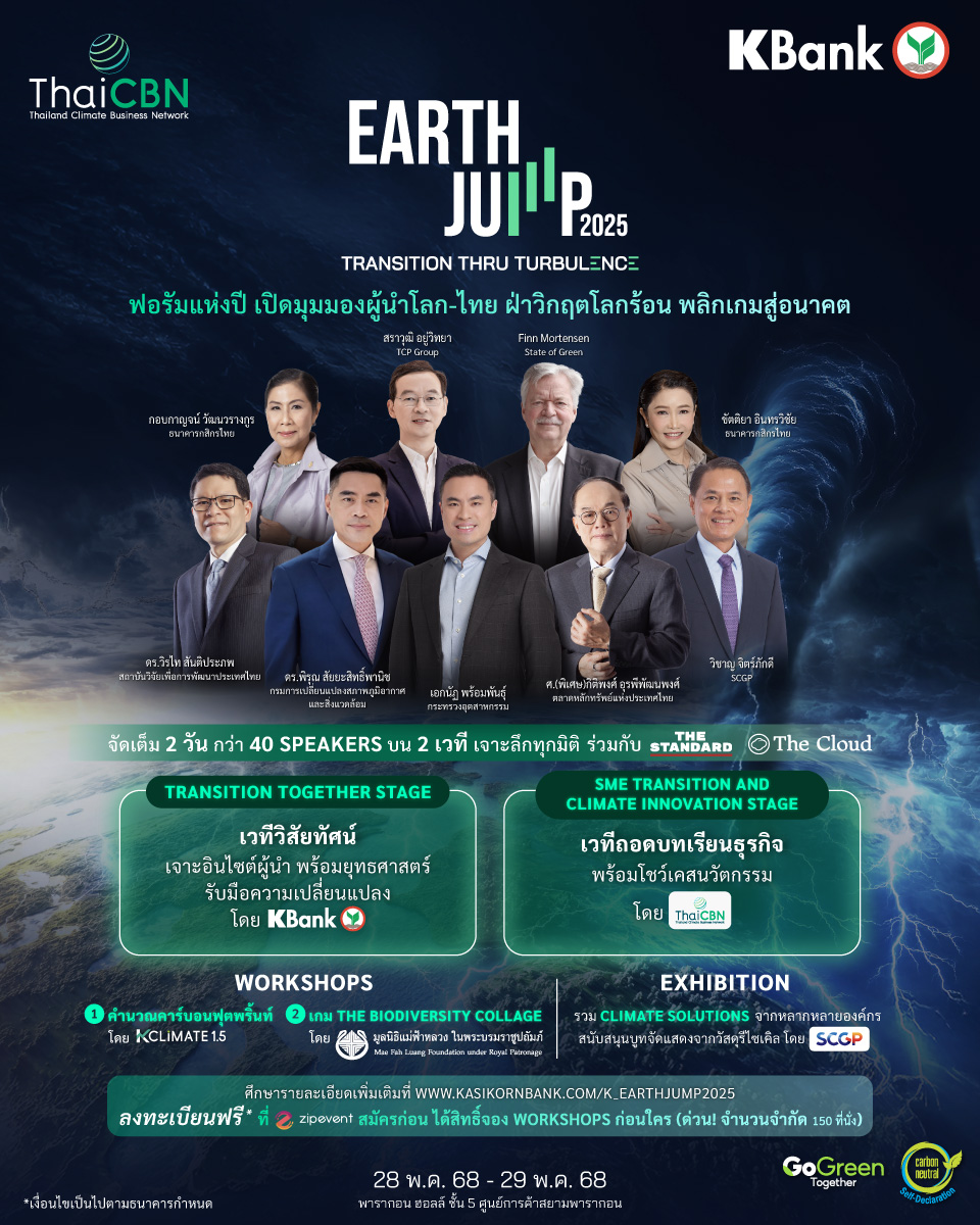 กรุงเทพฯ-เปิดให้ลงทะเบียนแล้ว EARTH JUMP 2025 ฟอรัมแห่งปีจากธนาคารกสิกรไทย ต่อเนื่องเป็นปีที่ 3 ภายใต้แนวคิด TRANSITION ...