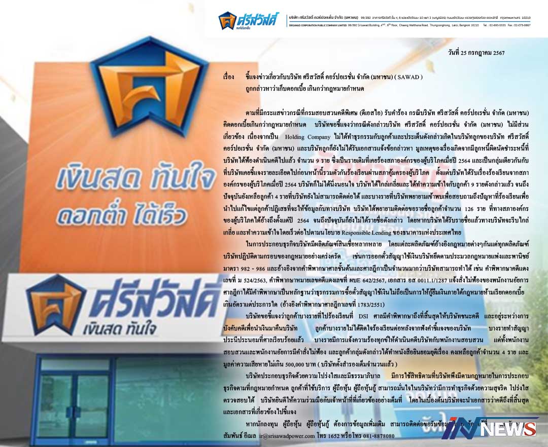 SAWADชี้แจงข่าวปล่อยกู้ดอกเบี้ยโหด ยันเป็นบริษัทลูก/ลูกหนี้หน้าเดิมร้องสคบ.