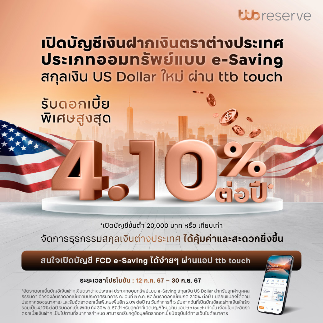 ทีทีบีมอบสิทธิพิเศษลูกค้าที่เปิดบัญชีใหม่ ผ่านแอปttb touch กับบัญชีเงินตปท.