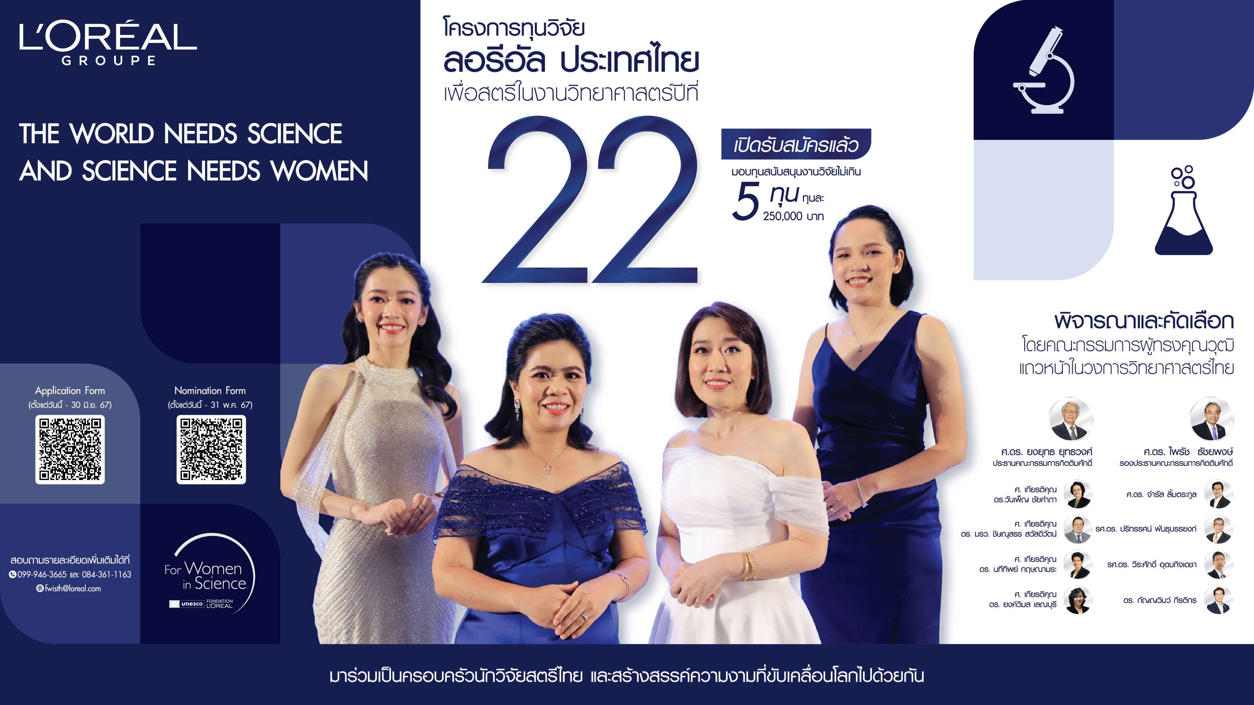 'ลอรีอัล'เปิดรับสมัครชิงทุนวิจัยถึง30มิ.ย. 5ทุน'เพื่อสตรีในงานวิทยาศาสตร์'