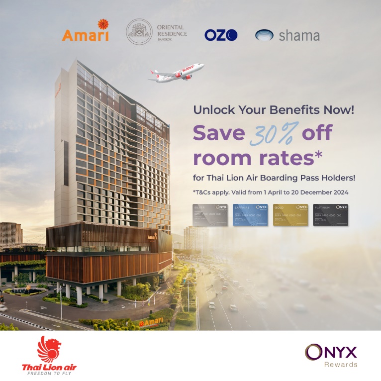 ออนิกซ์ฮอสพิทาลิตี้ลดค่าห้องสุงสุด30% จับมือกับ'สายการบินไทยไลอ้อนแอร์'