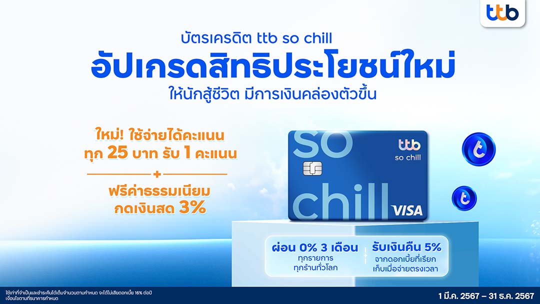 'ทีทีบี'อัปเกรดสิทธิประโยชน์บัตรเครดิต ttb so chillใหม่ให้นักสู้มีเงินคล่องตัว